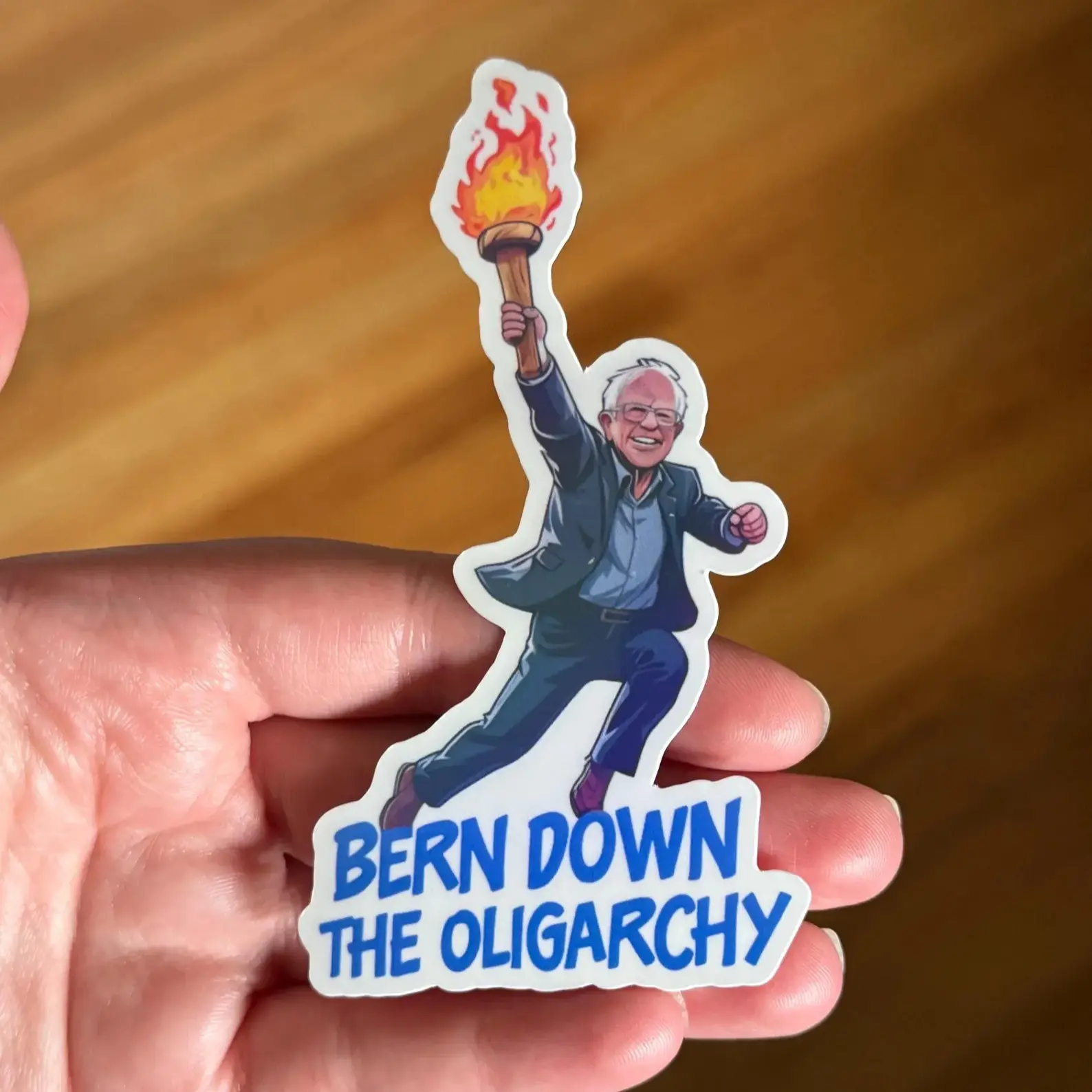 Show your support for Bernie Sanders and the fight against oligarchy with this striking anti-Trump sticker. Featuring a bold design that captures the essence of the political landscape, this sticker is perfect for rallying your community and expressing your views on the issues.