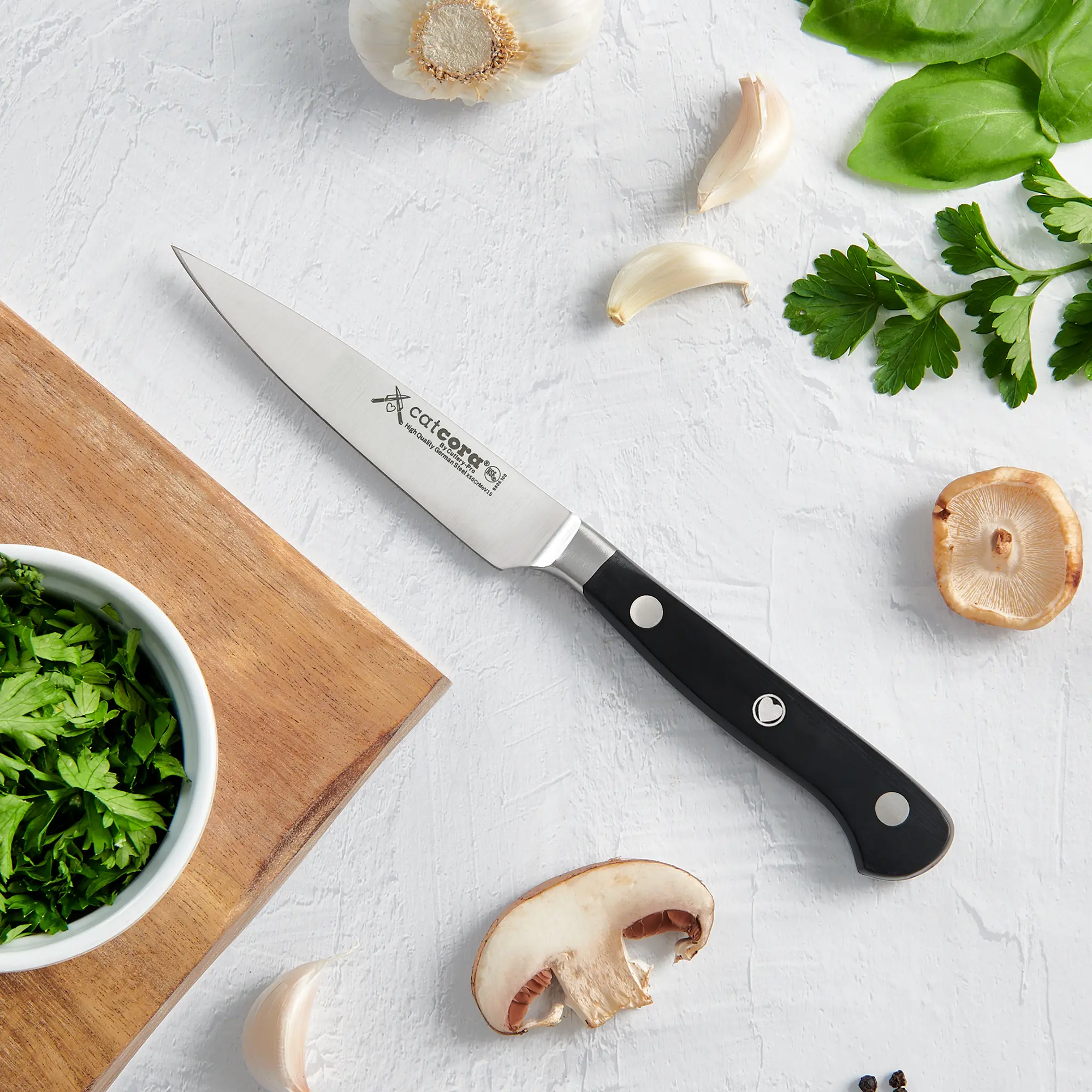 No more struggling with peeling and garnishing tasks with the CatCora by Cutlery-Pro Professional Forged Paring Knife. Engineered for both home cooks and culinary professionals, this premium 4-inch knife delivers the precise cutting sharpness and control needed for peeling produce and creating garnishes.
