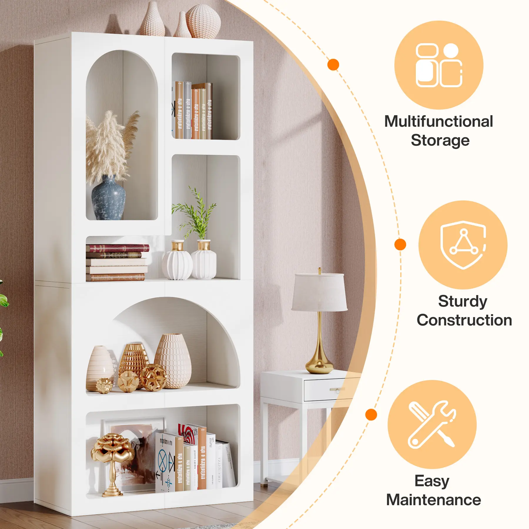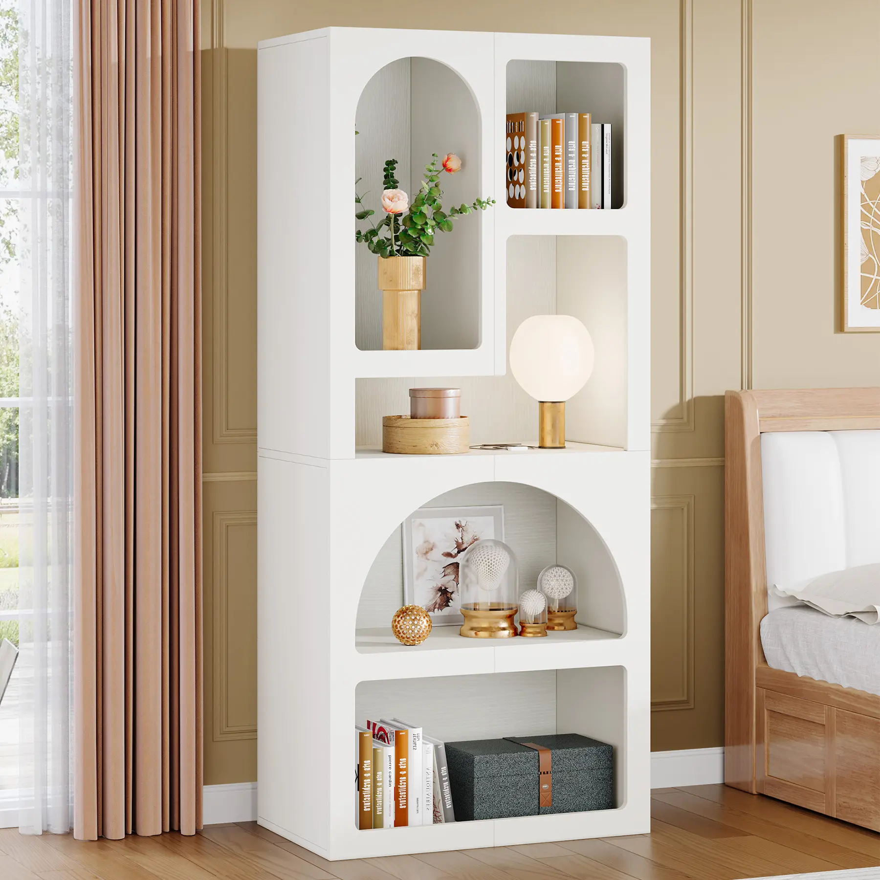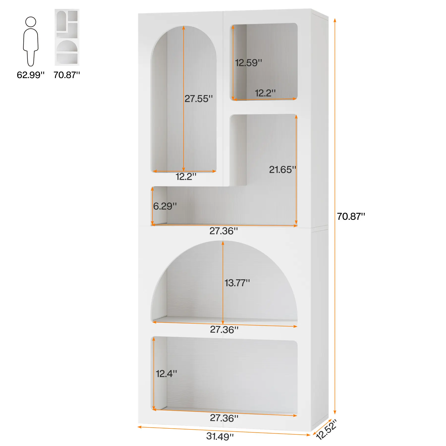 ✨ Showcasing a striking geometric silhouette, this modern bookshelf features 5 irregular storage shelves with varying heights and widths. Perfect for displaying framed photos, potted plants, and artful decorations. Its elegant arch design adds a statement-making touch to any room. Organize your prized possessions in a stylish manner.