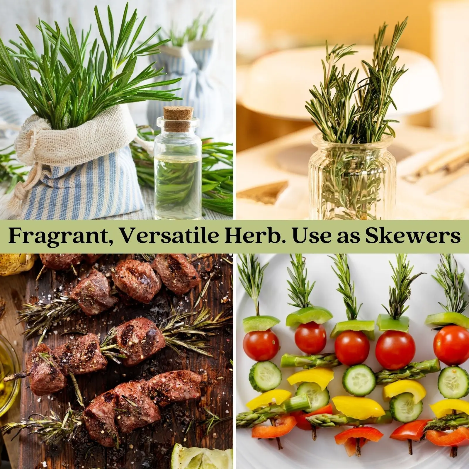 This Rosemary variety has stronger stems and more flavor in the needle-like leaves than other rosemary plants making it fantastic as BBQ skewers. The delicious herb is great for flavoring meat, bread, vegetables, stew, soup, and other food.