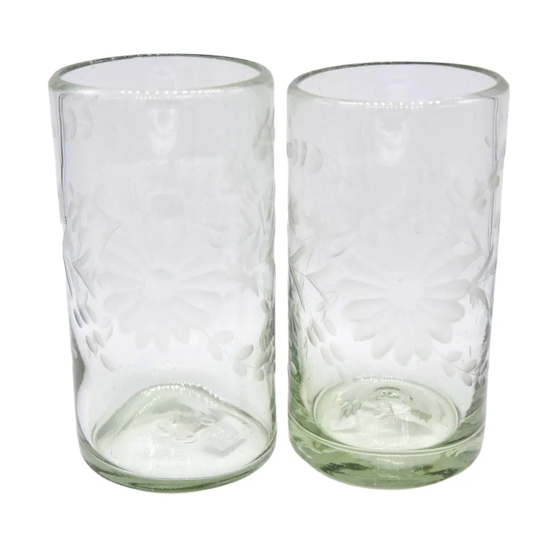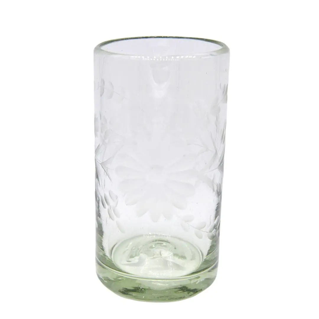 Serve a refreshing agua fresca in this tall glass engraved with flowers.