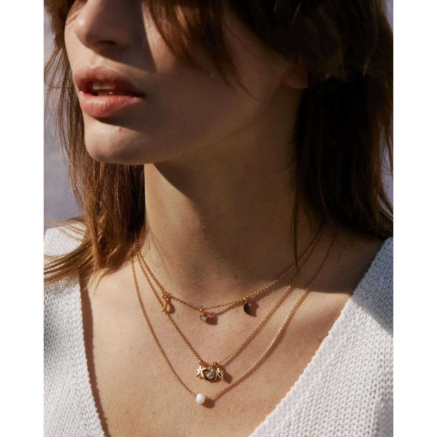I like this necklace. It seems good quality. However, the “shells” are smaller than I thought they would be. Also I didn’t realize the shells would all bunch together on the bottom of the necklace. It would be great if you could separate them by a small gold bead.