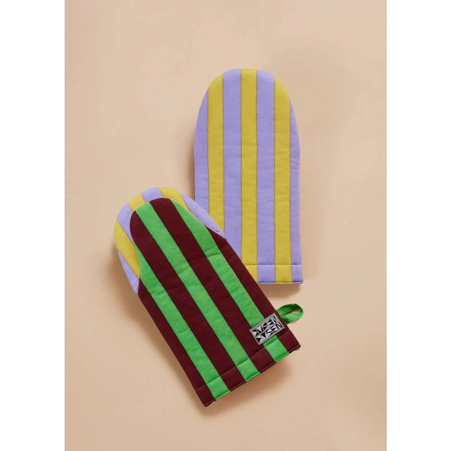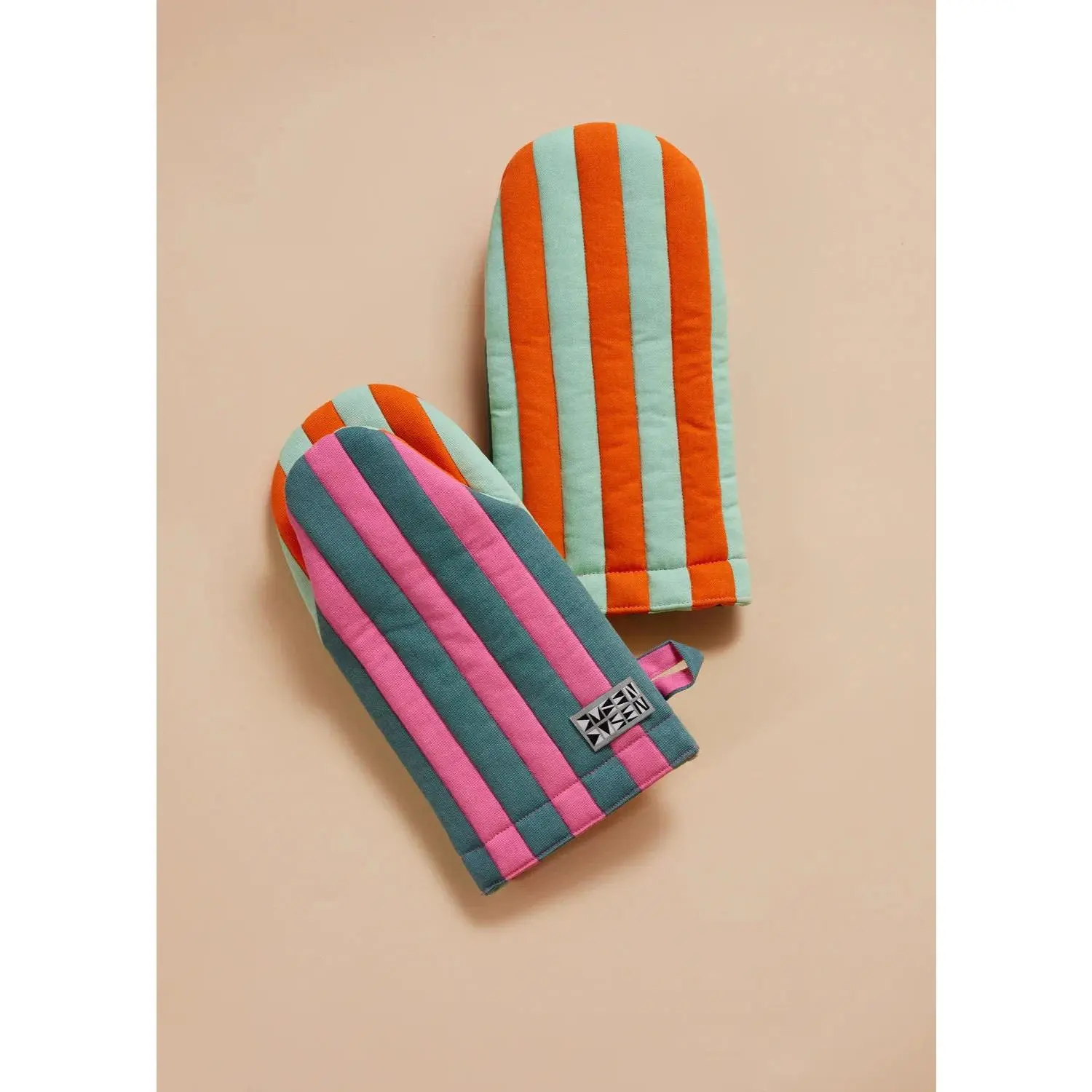·Padded oven mitt in contrasting stripe colorways