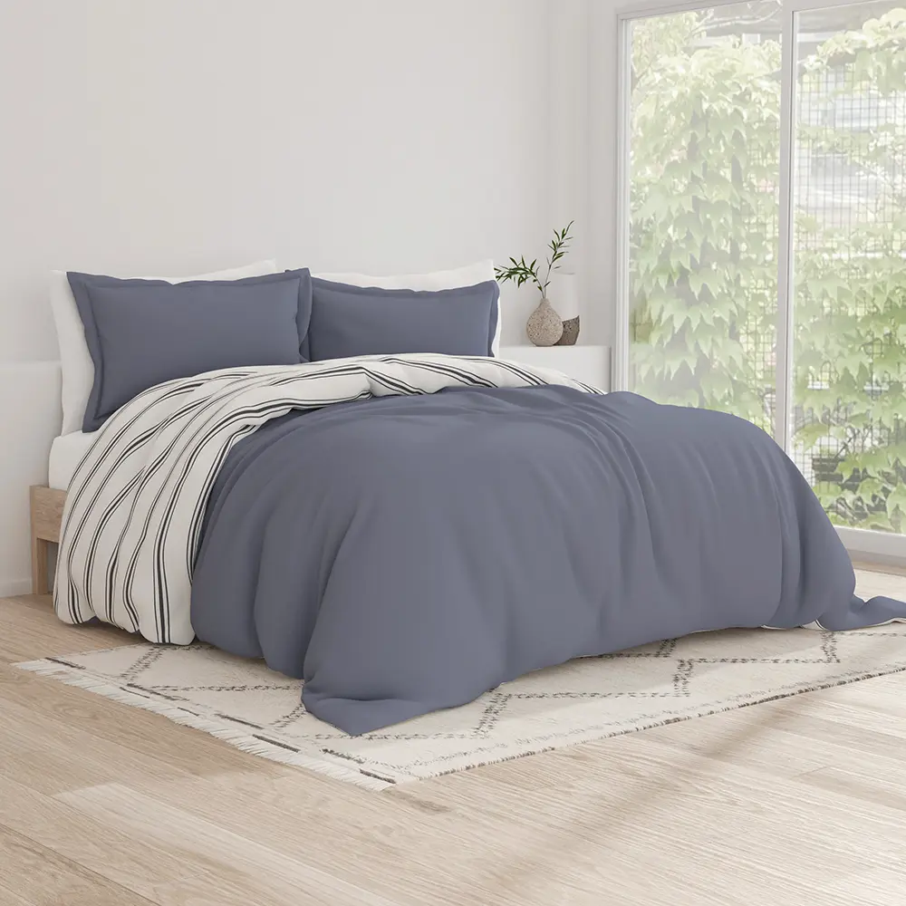 Love that it is reversible! Nice quality. Very comfortable. Fits well with the duvet insert. Easy to wash and dry. I bought several sets.