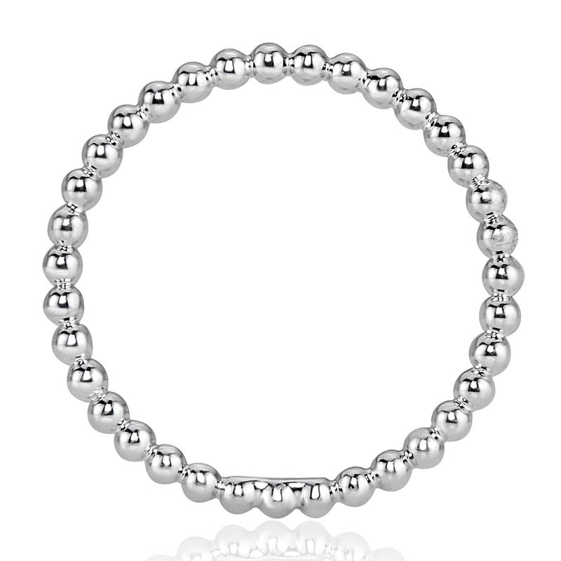 This chic platinum band is perfect as a compliment for everyday wear. Created with a modern beaded design, it pairs wonderfully with engagement rings and has enough presence as a stand-alone piece as well.
