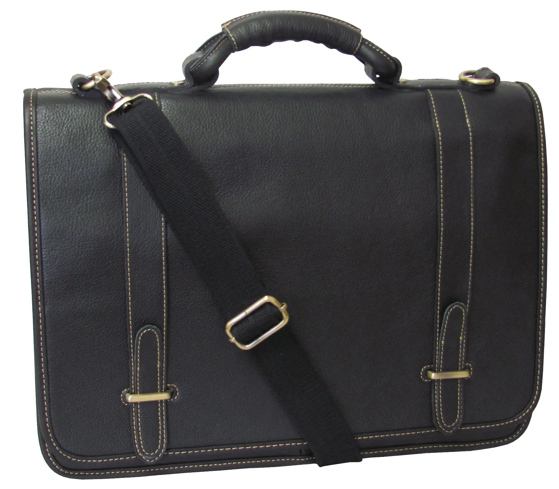 ·Top grain genuine leather flap over closure with leather slip on adjustable and removable cotton/leather shoulder straps.