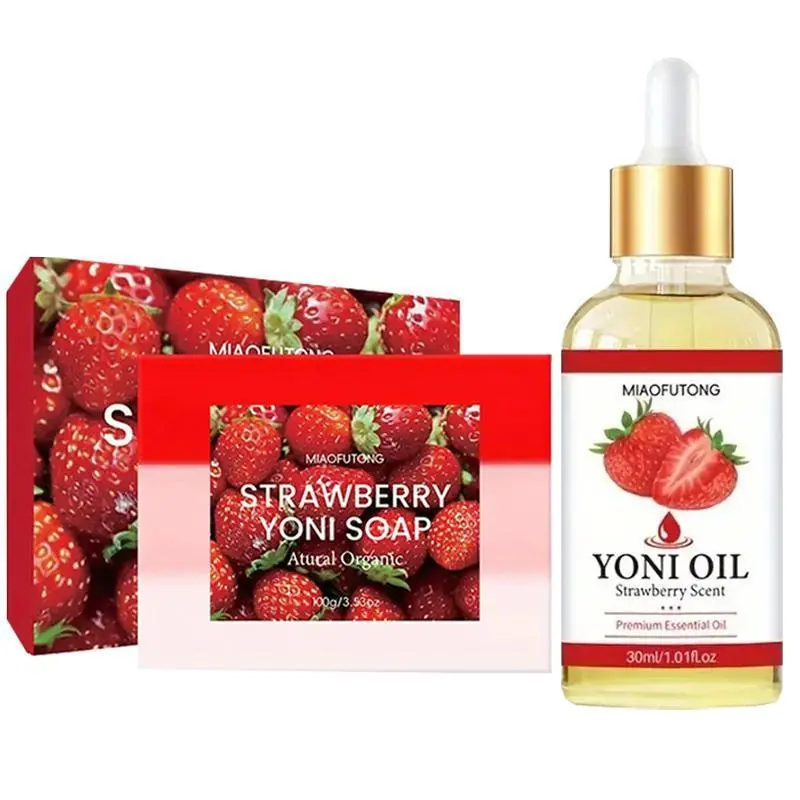 Strawberry Vaginal Oil and Soap Set, 2pcs/Set Moisturizing Vaginal Oil and Soap, Female Intimate Care Set refresh ph Comfort Hydrating Moisture Moisturizer