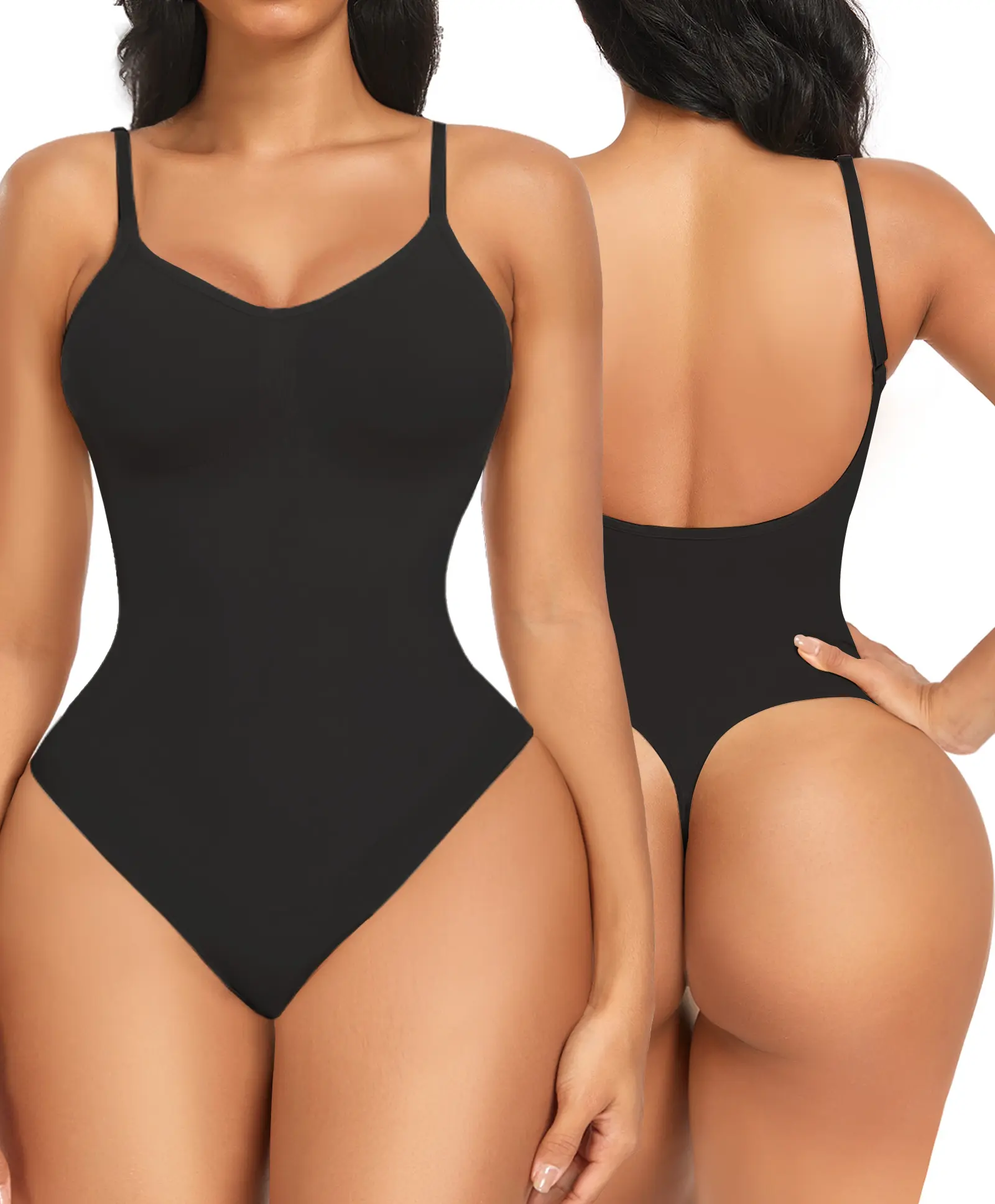 ·BACKLESS SHAPEWEAR BODYSUIT THONG - Low back style pairs well with low back dresses and tops. Thong design give you natural and sexy peach buttocks. The soft crotch part featured with snap closure, convenient for bathroom without taking off all your clothes and friendly for your inner thighs when walking.