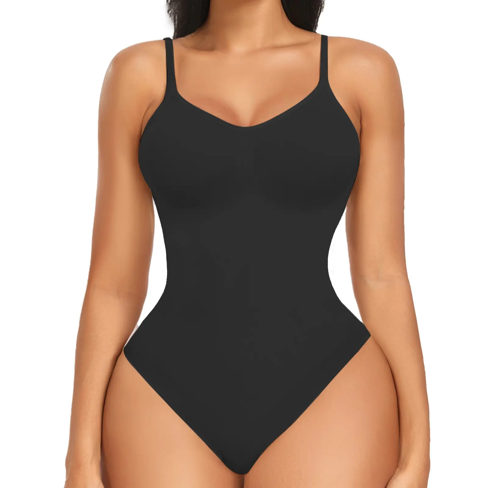 ·UNIQUE DESIGN - This women's shapewear featured with beautiful V-neck can show your charming collarbone. The anti-skid adjustable shoulder straps with no rolling and no bunching. No compression bra design fits most cups, and gives your chest support.