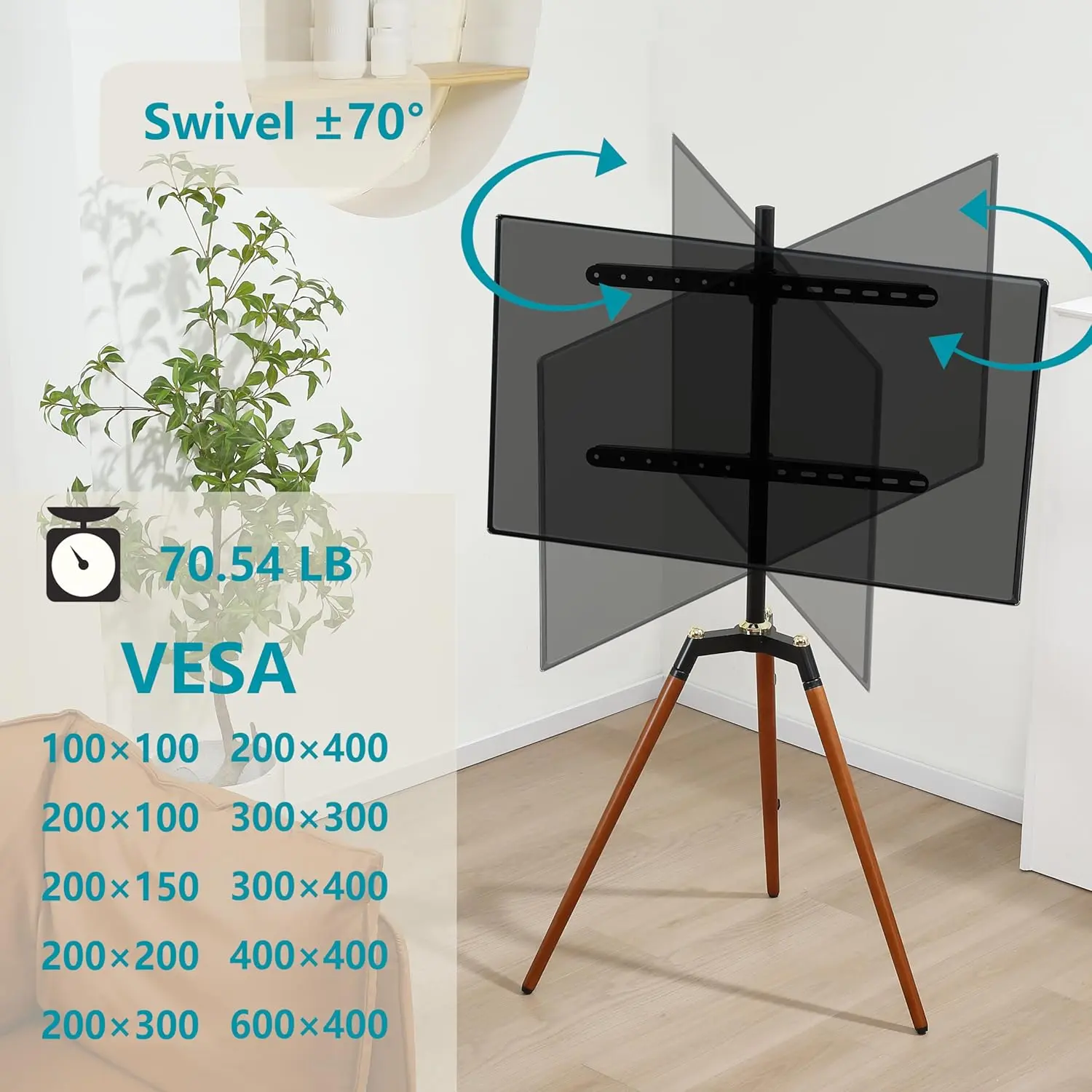 Fydeamer Universal Tripod Easel TV Stand for 32-65 inch LED LCD Screen Flat Curved Screen, Height Adjustable Studio TV Display Stand with 140 ° Swivel for Bedroom, Living Room, Corner TV Stand