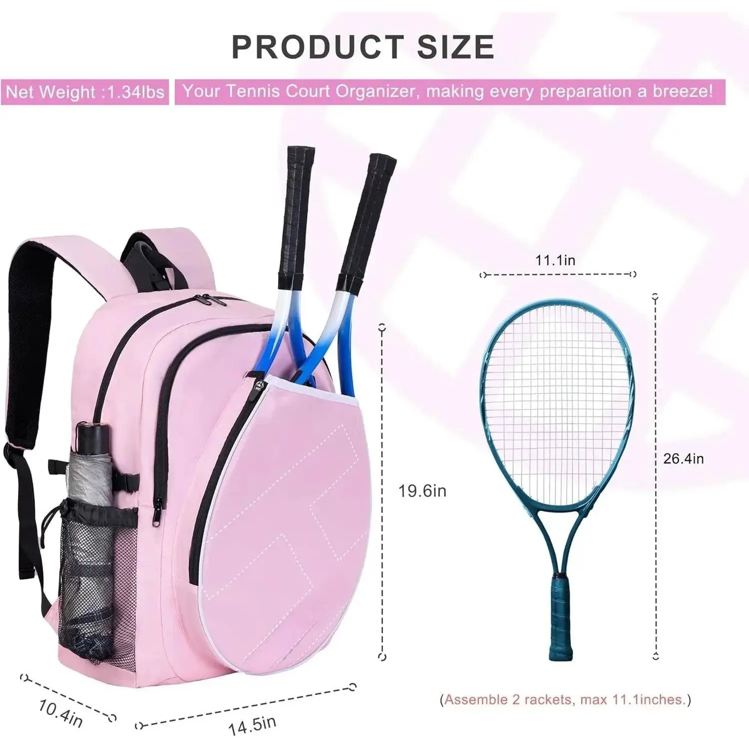 ·【Spacious Capacity】Dimension: 14.5 x 19.6 x 10.4 inches, offering ample space for all your essentials. It is designed with a main bag, racket bag, shoe compartment and hidden pocket, accessory pockets on the side, and a thermal insulation layer in the front, which can fully accommodate rackets, clothes, shoes, tennis bottles and other sports items