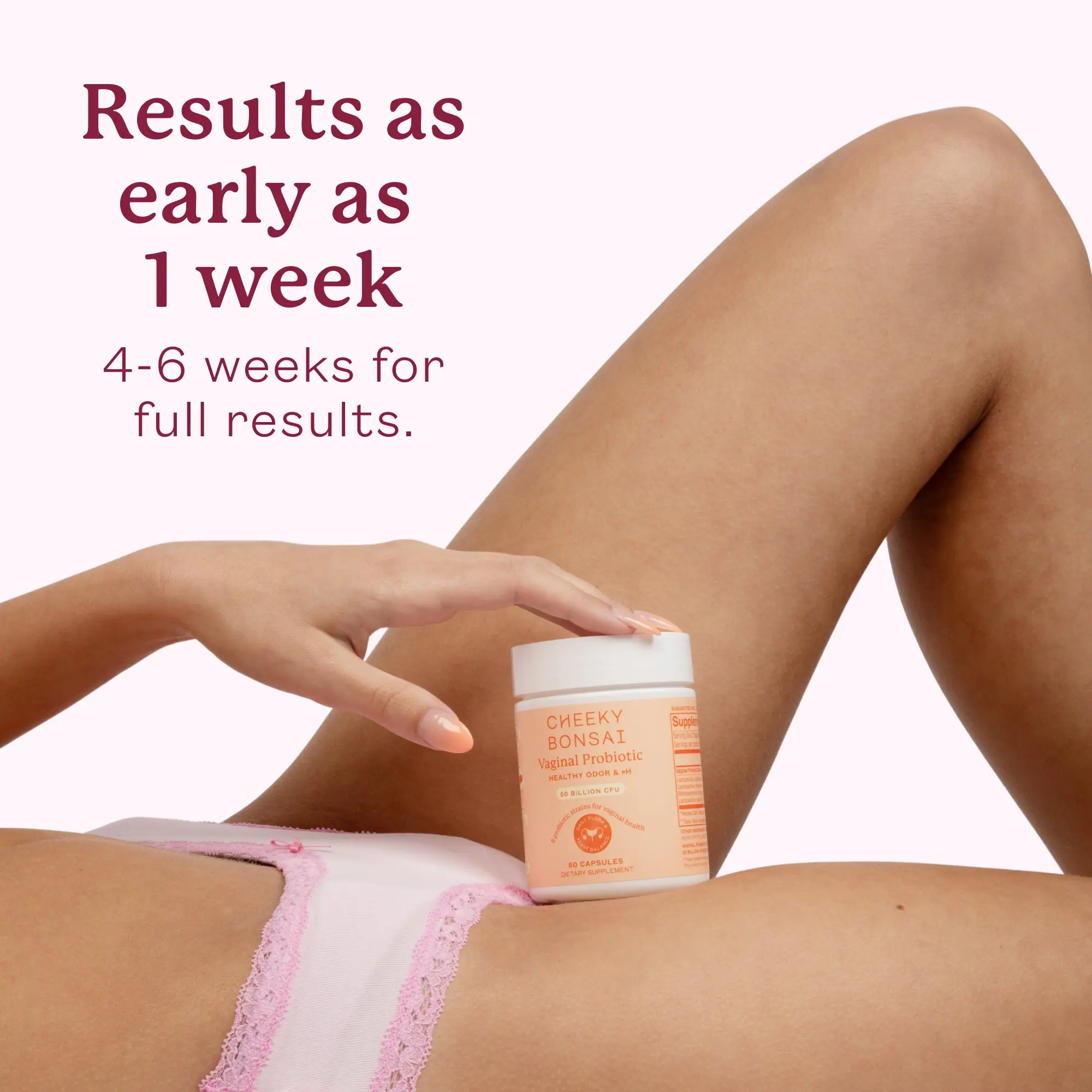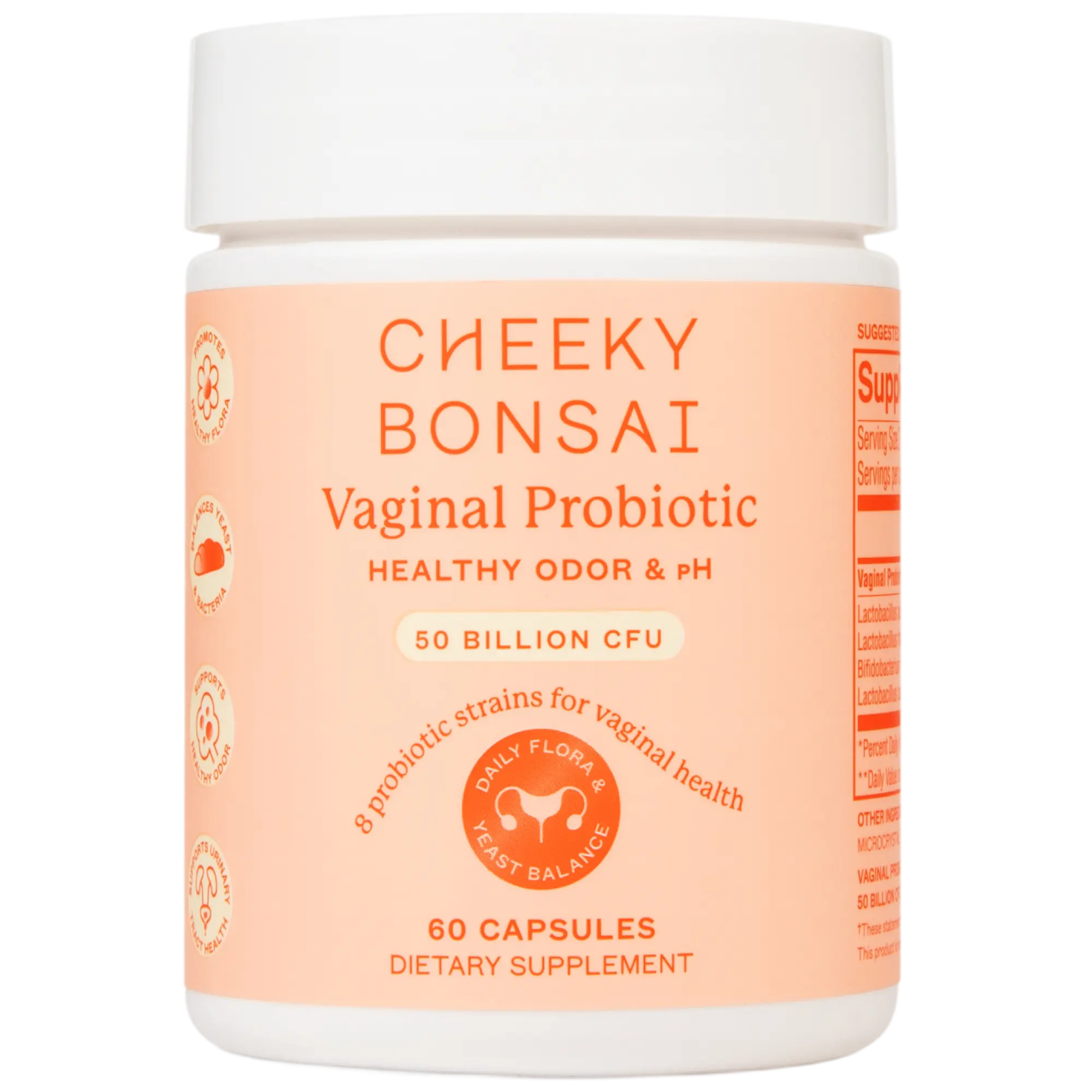 Cheeky Bonsai Maximum Support Capsules are premium vaginal probiotics formulated to support optimal feminine health and balance. Each capsule contains a powerful blend of clinically studied probiotic strains that help maintain a healthy vaginal pH, promote beneficial bacteria, and reduce odor or discomfort caused by imbalance. Designed for daily use, these capsules work from the inside out to support long-term wellness and confidence. Made with care and backed by science, Cheeky Bonsai’s Maximum Support Capsules are free from artificial colors, GMOs, and unnecessary fillers. Whether you’re looking to restore balance after your cycle, antibiotics, or just want to maintain consistent vaginal health, these probiotics are a gentle yet effective solution to keep you feeling fresh, confident, and in tune with your body.