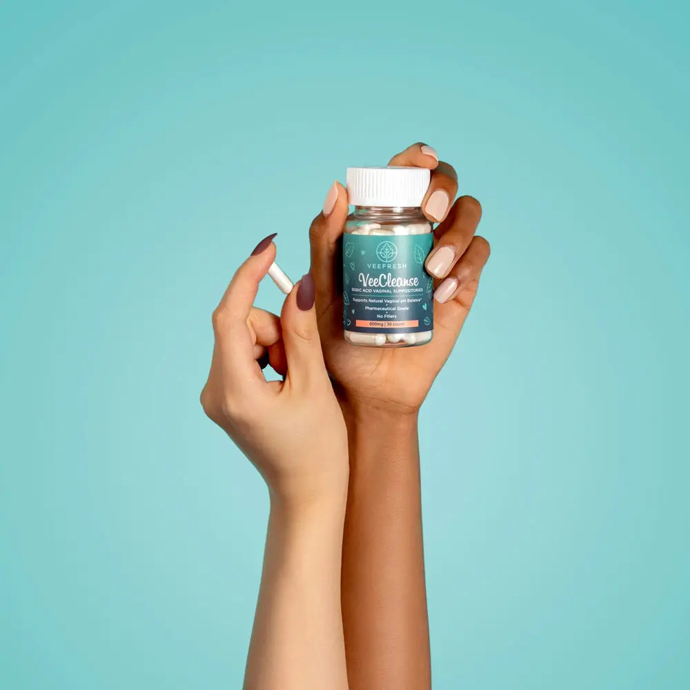 Side effects of using VeeCleanse are rare, but can include watery discharge, mild burning, or gritty sensation in the vagina. If any side effect persists, we recommend visiting your OB/GYN.
