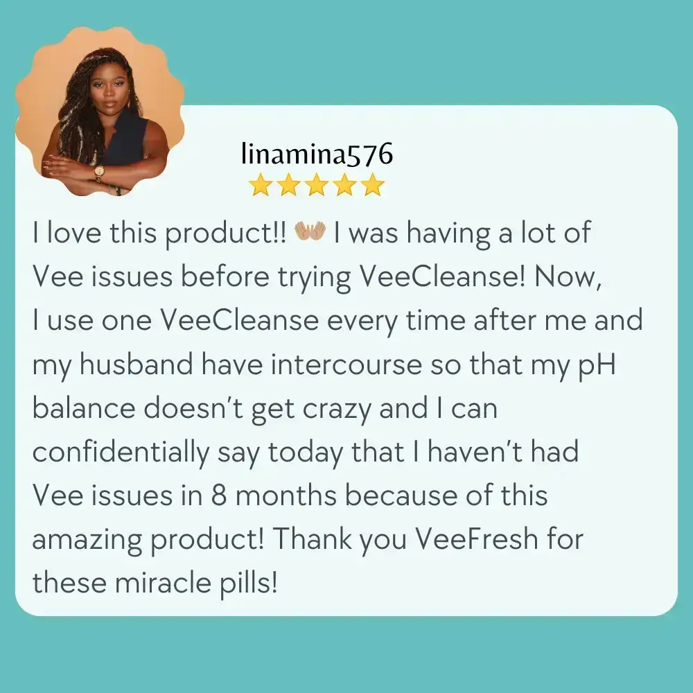 ·After the initial cleanse, we recommend using VeeCleanse for maintenance as needed after events that may disrupt your vaginal pH balance like sex, periods, or working out.