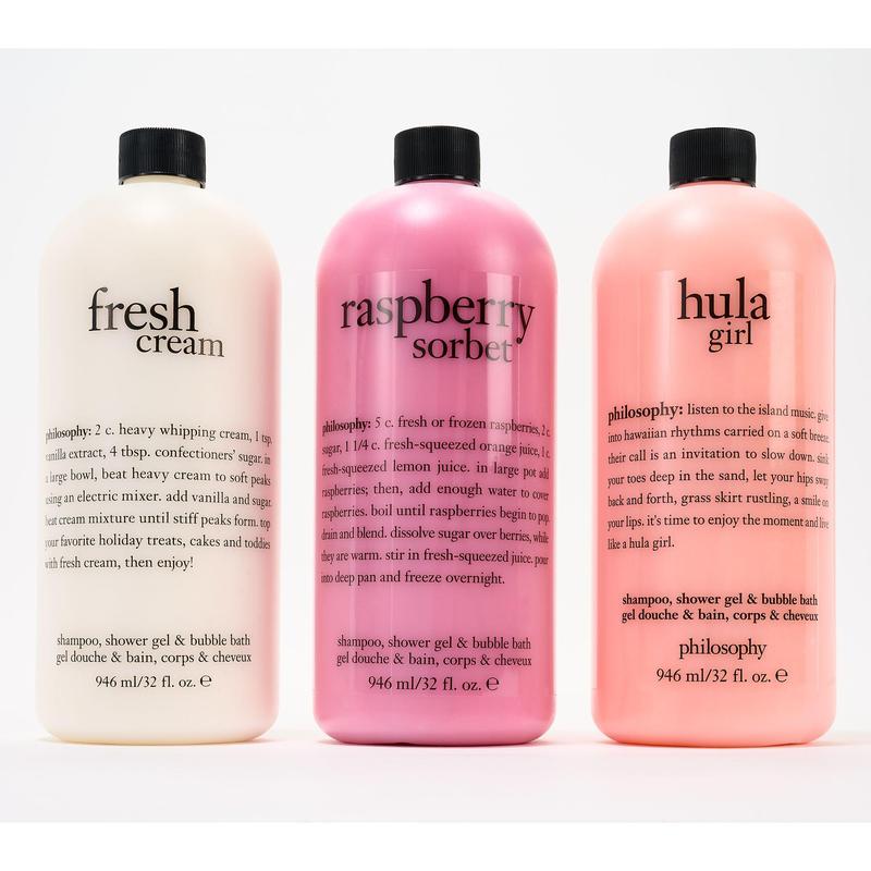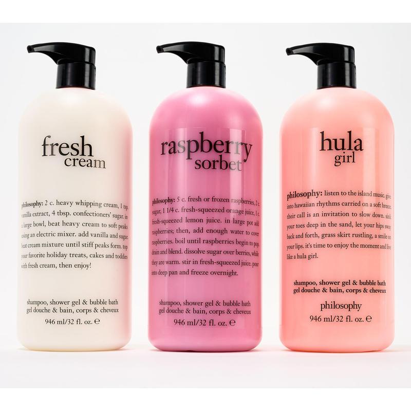 Cleanse yourself from head to toe in philosophy's famous shampoo, bath, and shower gel with a fresh scent. This multi-tasking and multi-sensorial formula cleanses skin and hair in a cushion of hydration while leaving skin clean, soft, and comfortable.