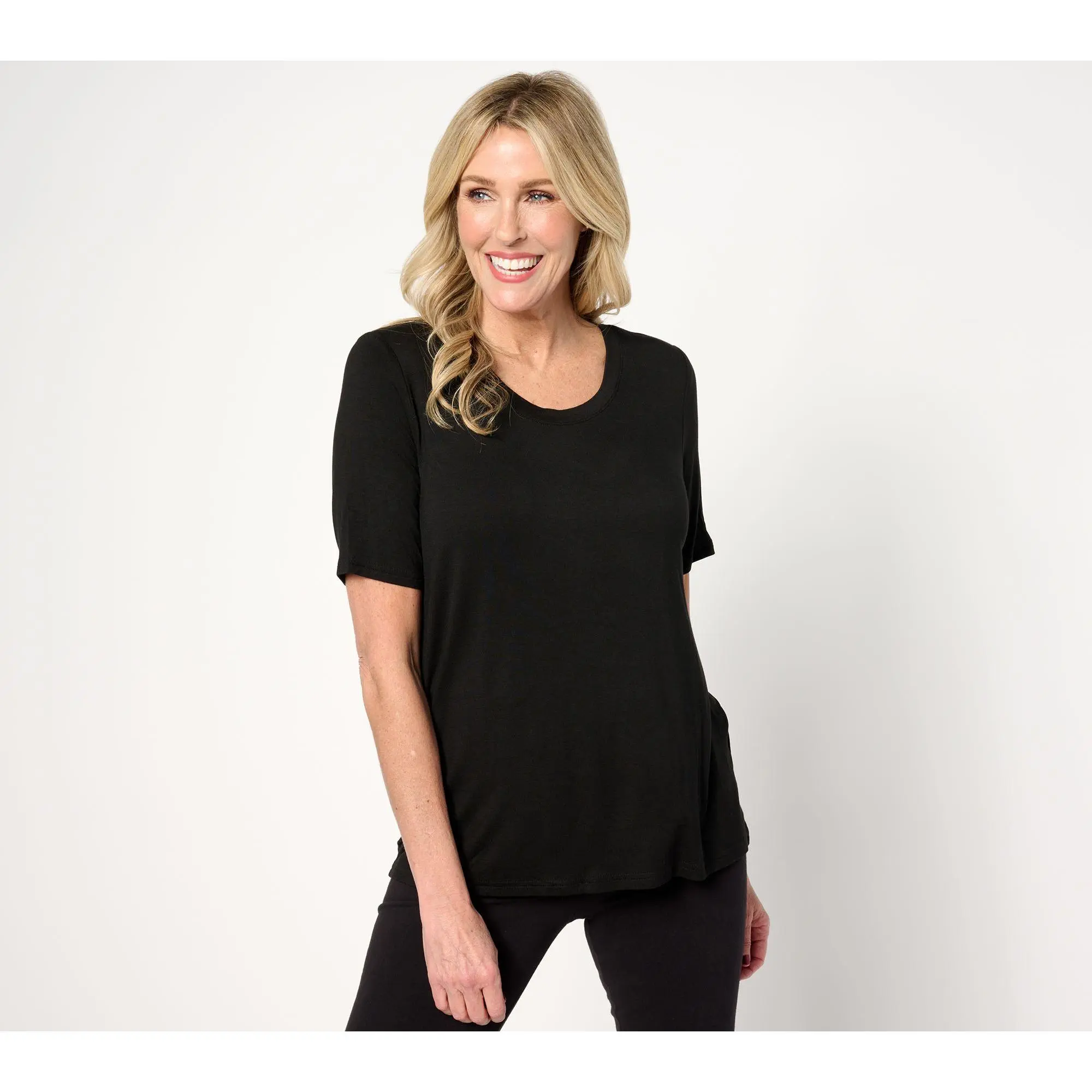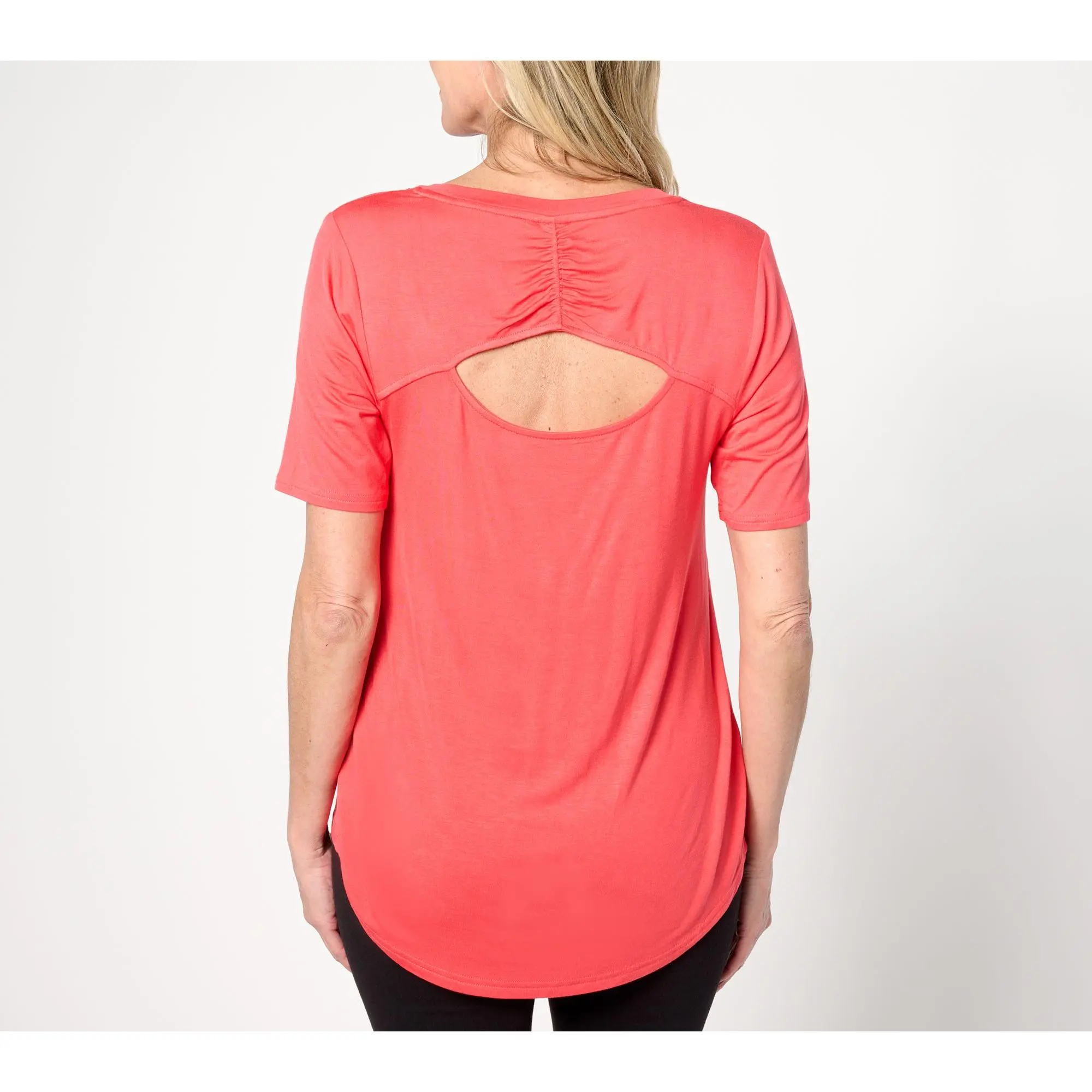 zuda Scoop neck Short Sleeve Top with Keyhole Back