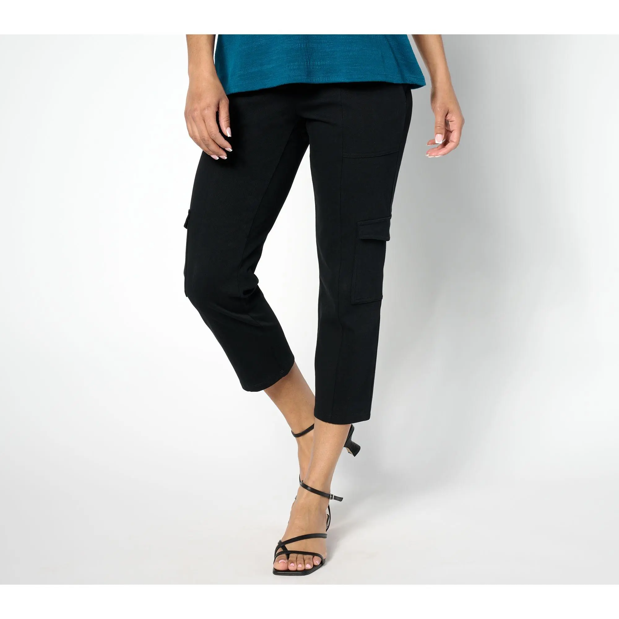 ·Features: pull-on style, wide elastic waistband with Tummy Control with Blu-Tec Control SystemTM: Tummy Control waistband lined with Blu-Tech Control SystemTM mesh for smoothing and support without the need for a shaper or compression garment, front pockets, side leg flap cargo pockets
