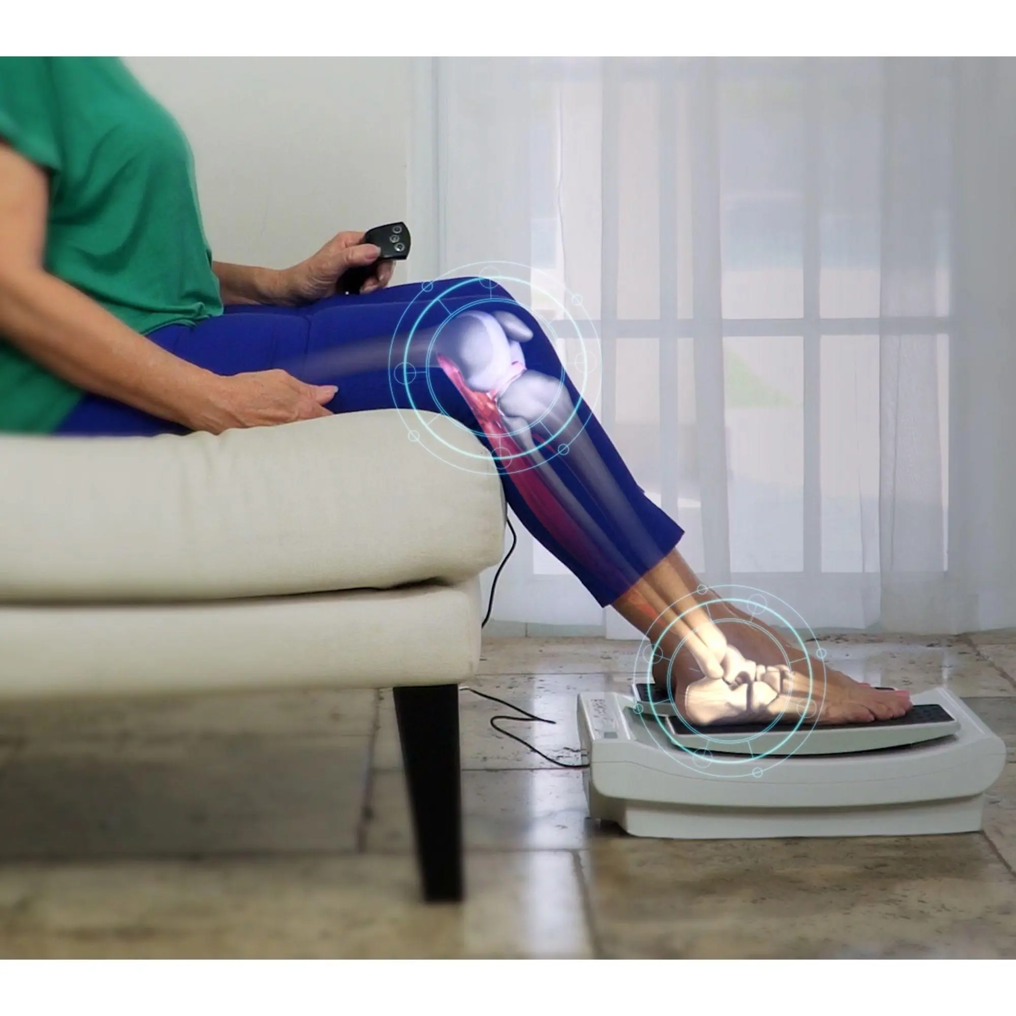 creates continuous leg movement, moving your feet back and forth to help engage the leg muscles while seated. It provides gentle flexing of the knees and ankles -- ideal for those with mobility issues who want to keep their legs moving from a cushioned living room chair, the dinner table, or a reading nook.