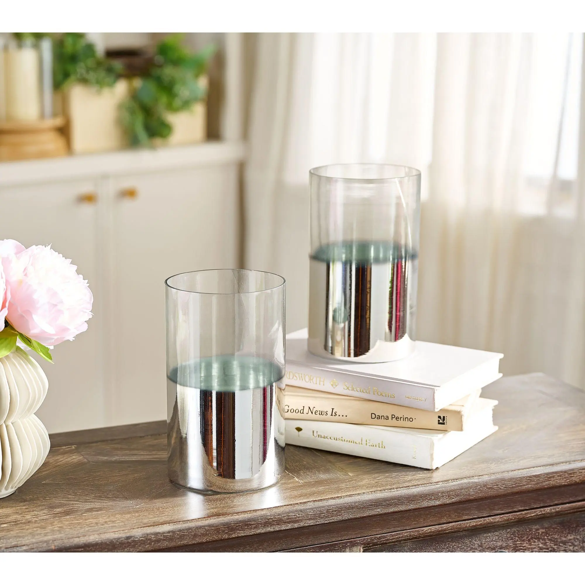 Primrose Hill Set of 2 7" Metallic Ombre Glass Hurricanes