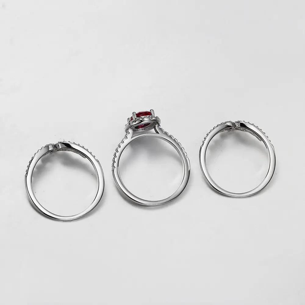 Elevate your style with this exquisite 925 sterling silver three-piece set ring, designed specifically for women. This set includes a stunning red oval zirconia setting, making it a perfect addition to any jewelry collection.