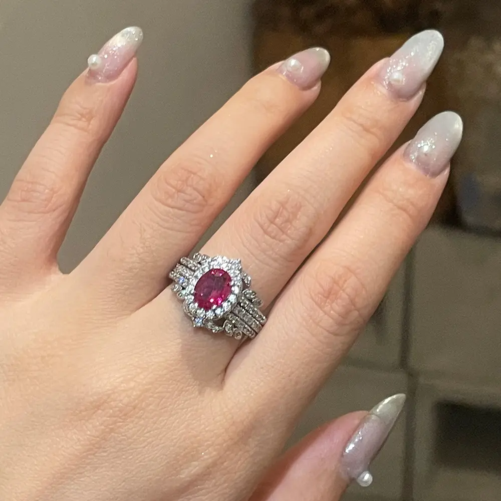 ·Design: Features a red oval zirconia setting, adding a touch of elegance and sparkle.