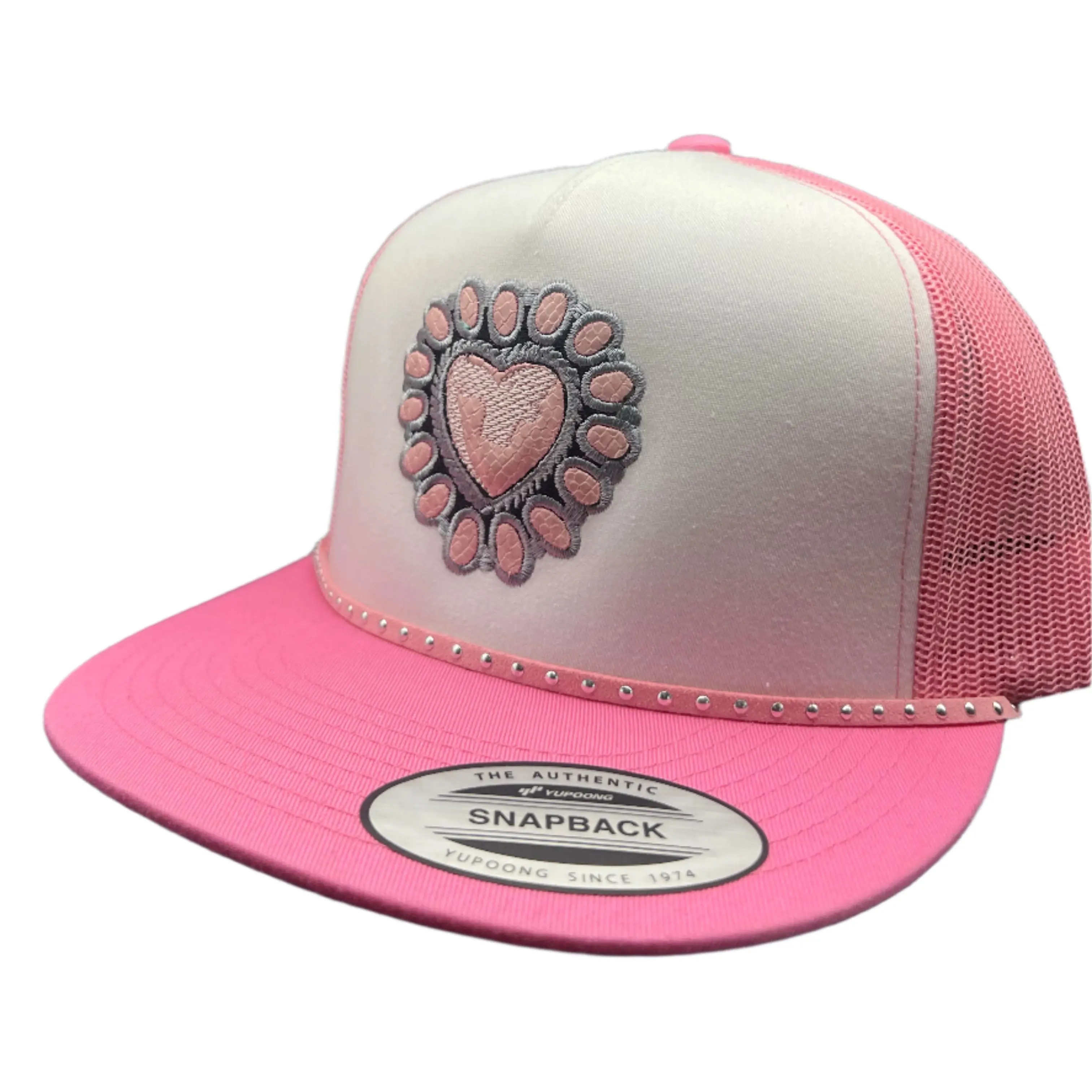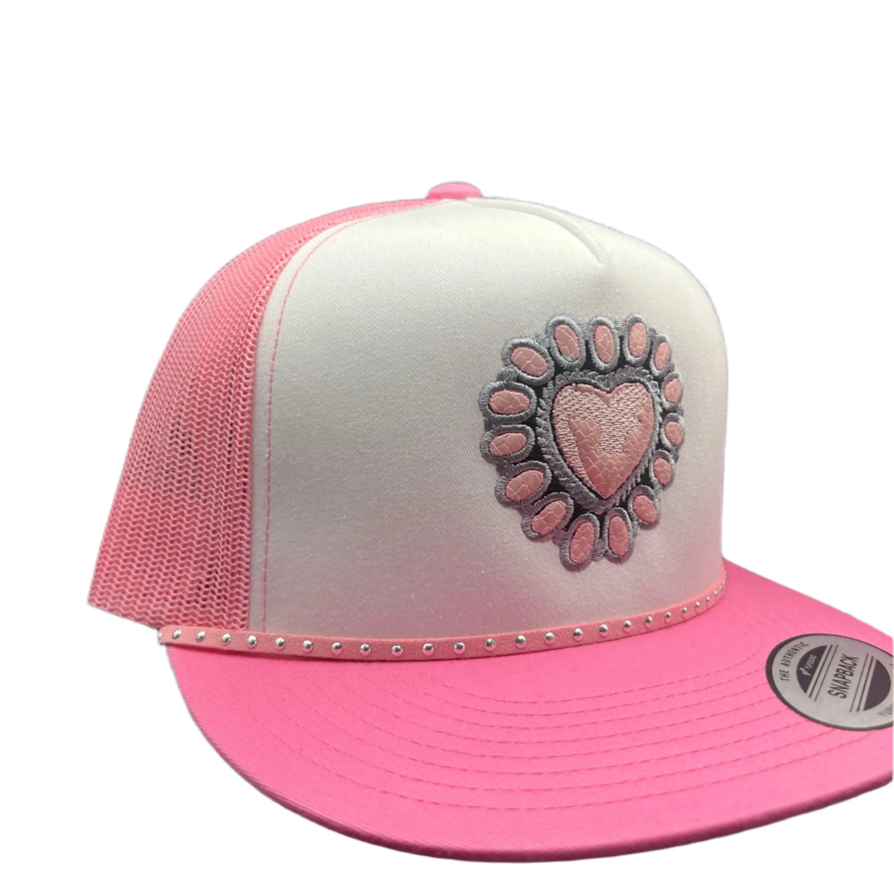 This one’s got main character energy. The Pink Cowgirl Candy hat is sweet with a little sass — featuring a custom patch designed to mimic a vintage brooch, but with a twist: that centerpiece is detailed to look like pink snakeskin. Set on a cotton candy pink and white snapback with rhinestone accents across the brim, this one’s made to turn heads. Pretty. Bold. Western.