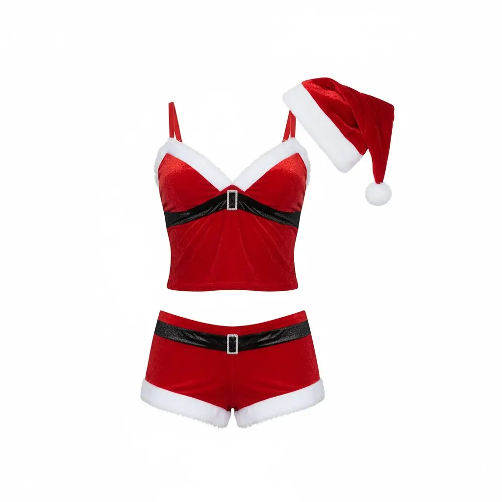 Santa Outfit Christmas Lingerie Set – Sexy Red Velvet Holiday Lingerie for Women Costumes Womenswear