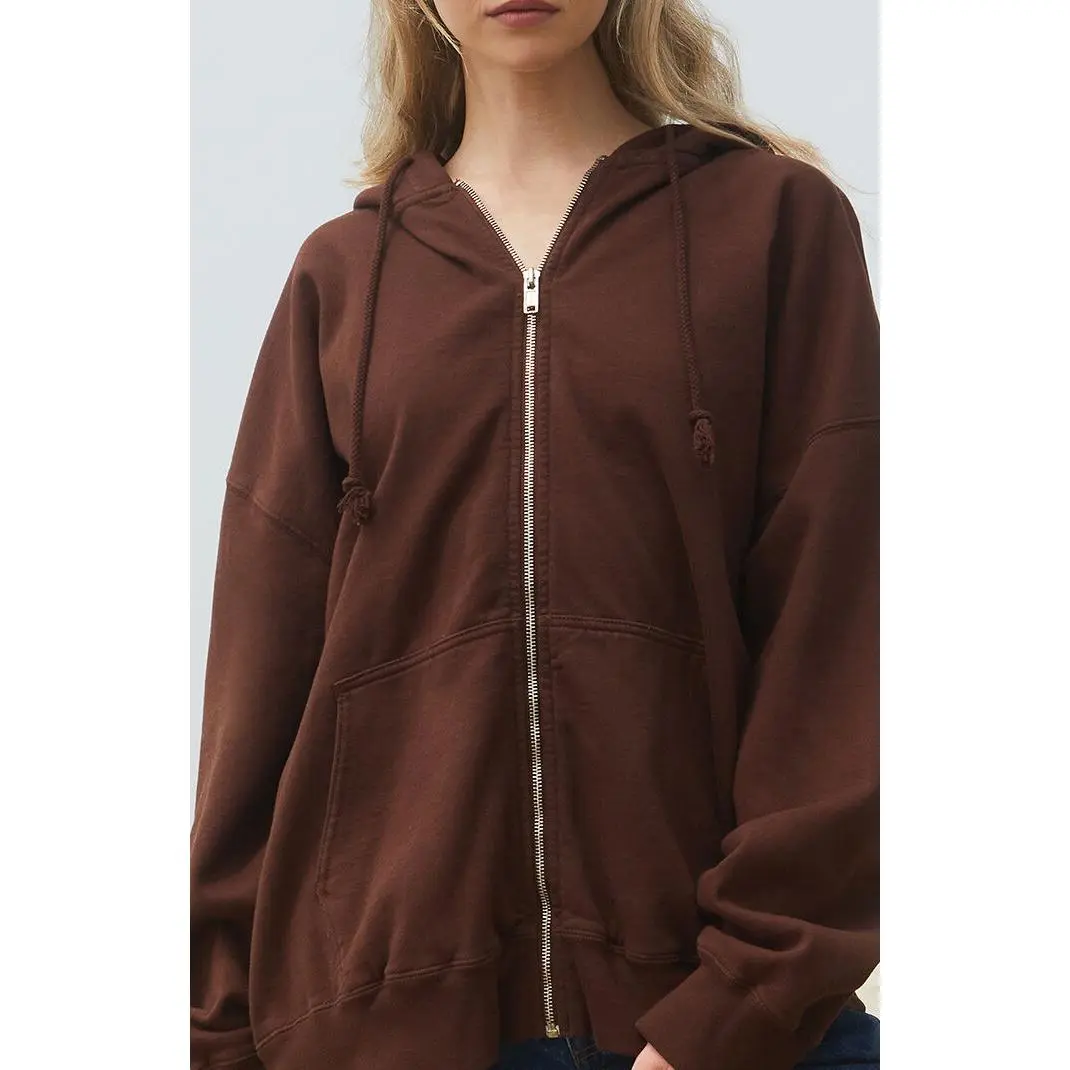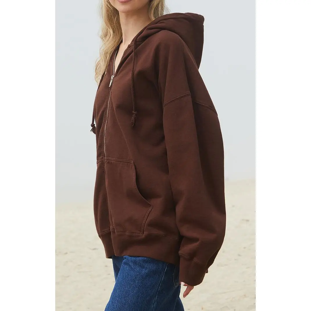 Keeping effortlessly cool and cozy is easy with the Brown Christy Full Zip Oversized Hoodie from John Galt. This staple piece has a comfortable oversized fit with a full zipper front closure, side hand pockets, and an adjustable drawstring hood.