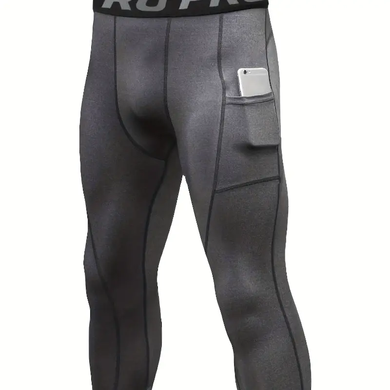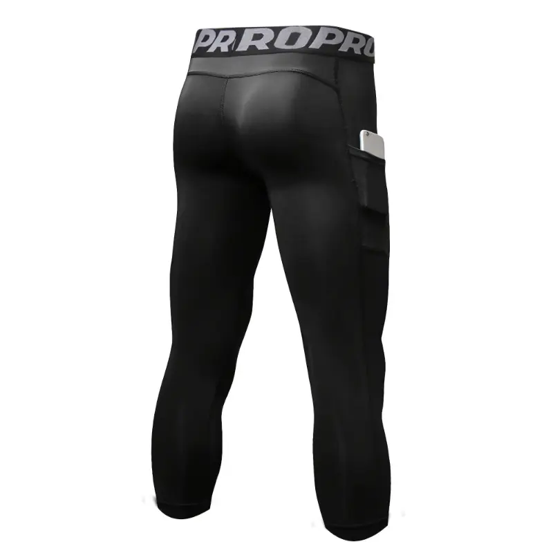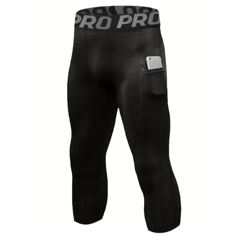 Men's Pro Compression Capris with Pockets - Quick-Dry, Stretchy Athletic Leggings for Basketball & Running, Breathable Polyester-Elastane Blend, Machine Washable