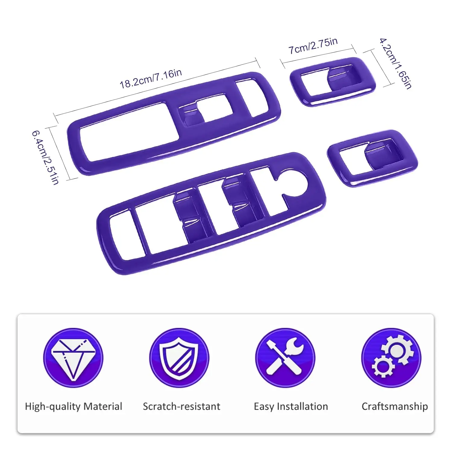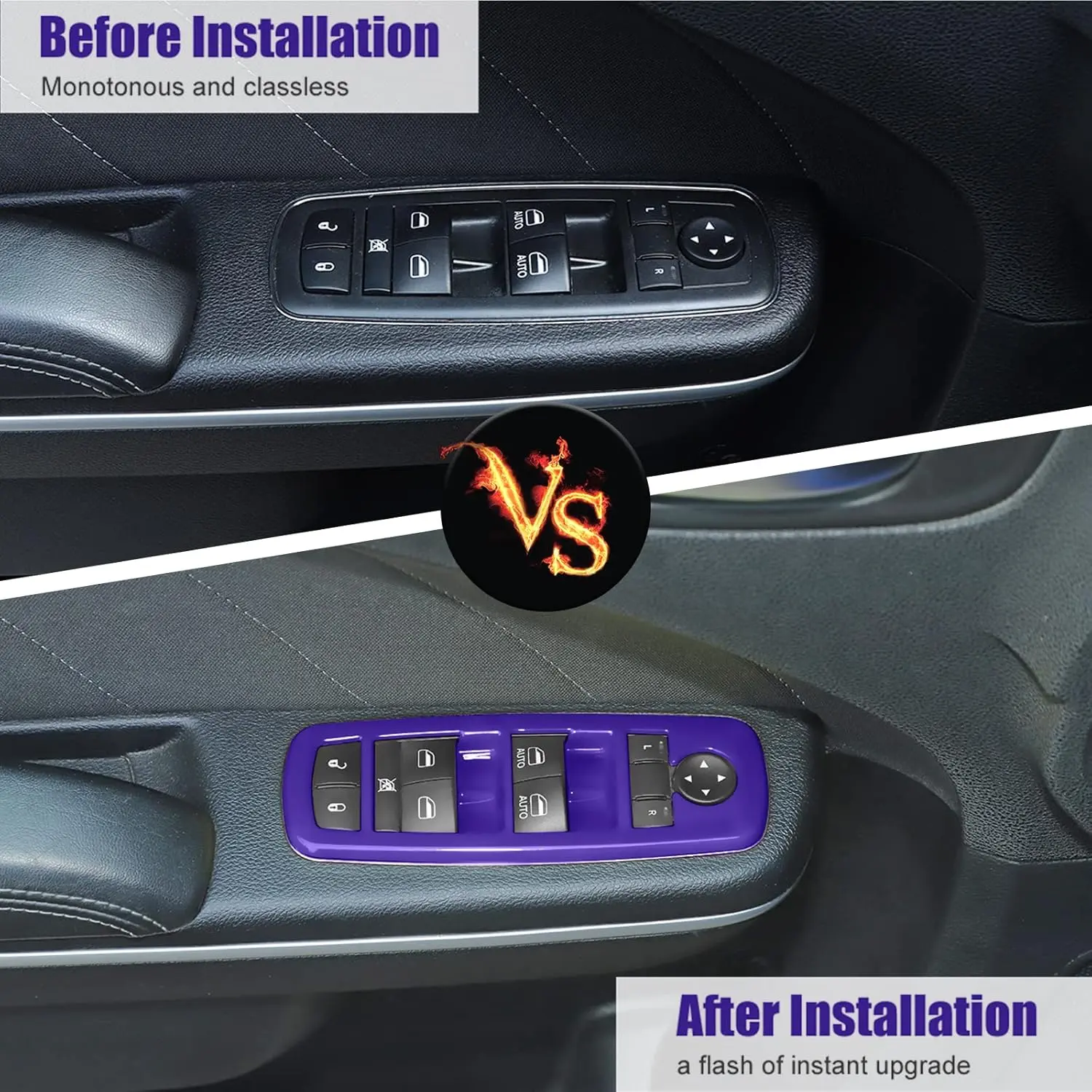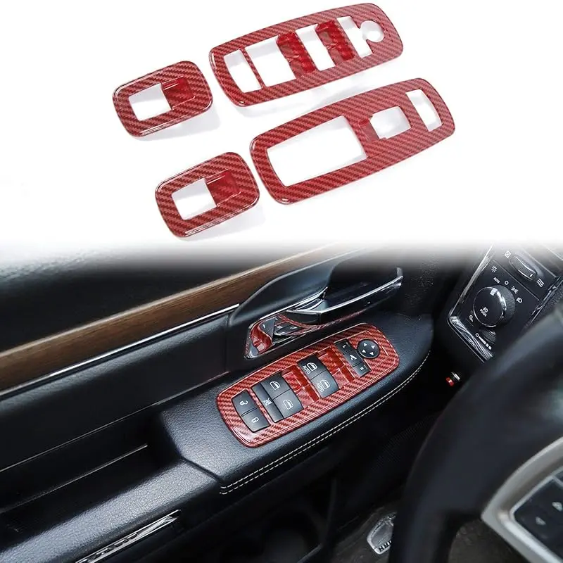 APPLICATION:Window Lift Switch Power Window Control Regulator Button Embellishment Trim for 2011-2024 Dodge Charger Durango, for 2010-2017 RAM, Interior Accessories ABS