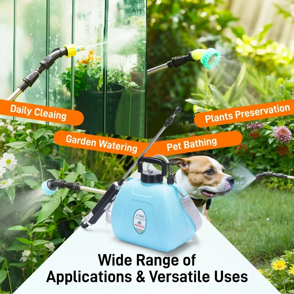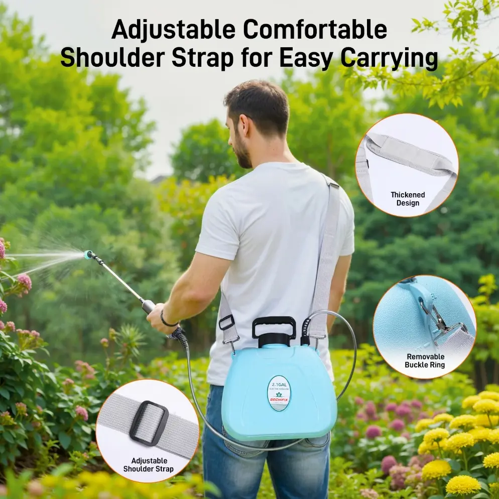 Our 2.11 gallon lawn sprayer is perfect for a wide range of tasks, from watering plants and applying lawn fertilizer to, cleaning your home or car, and even sprinkler for your yard. Whether you're a seasoned gardener or a beginner, sprayers in lawn and garden is a versatile and dependable tool for all your gardening and household needs.