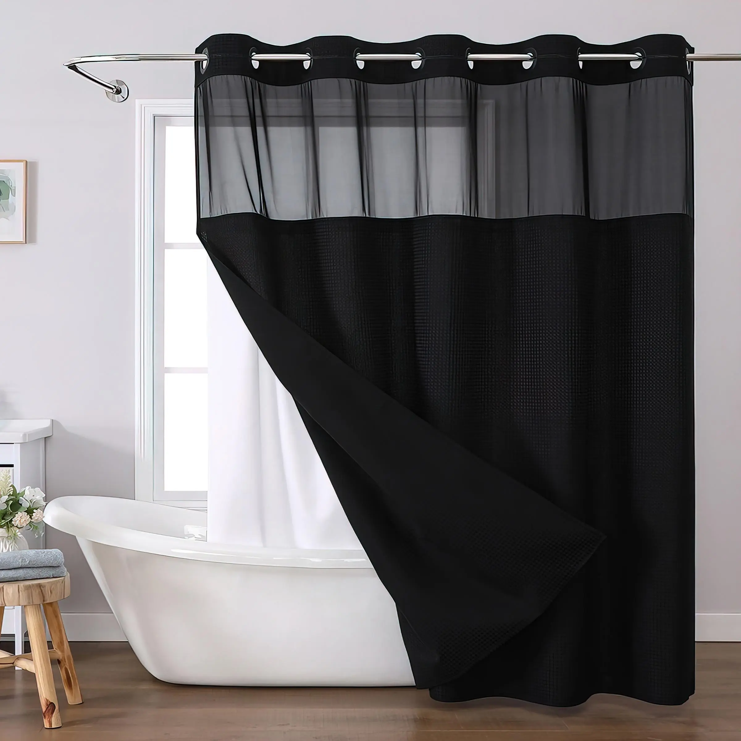 Definitely not up yet but I already have the white one and these shower curtains are amazing so I had to buy the black one