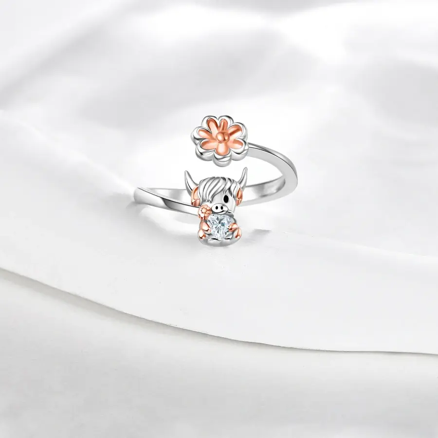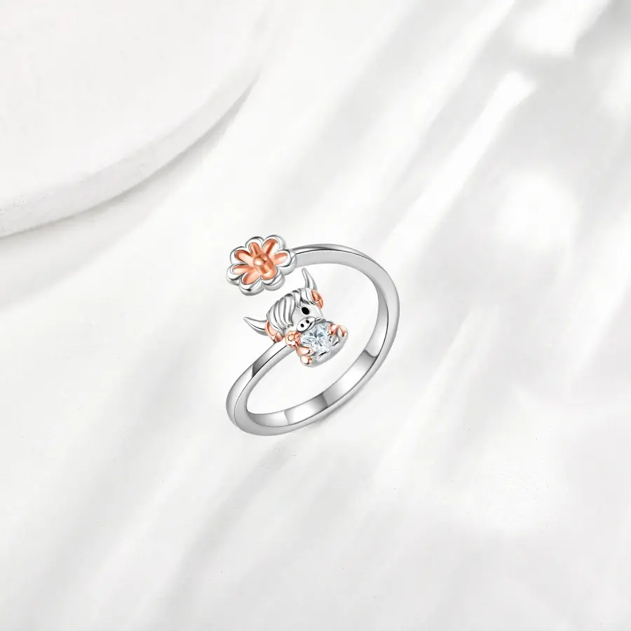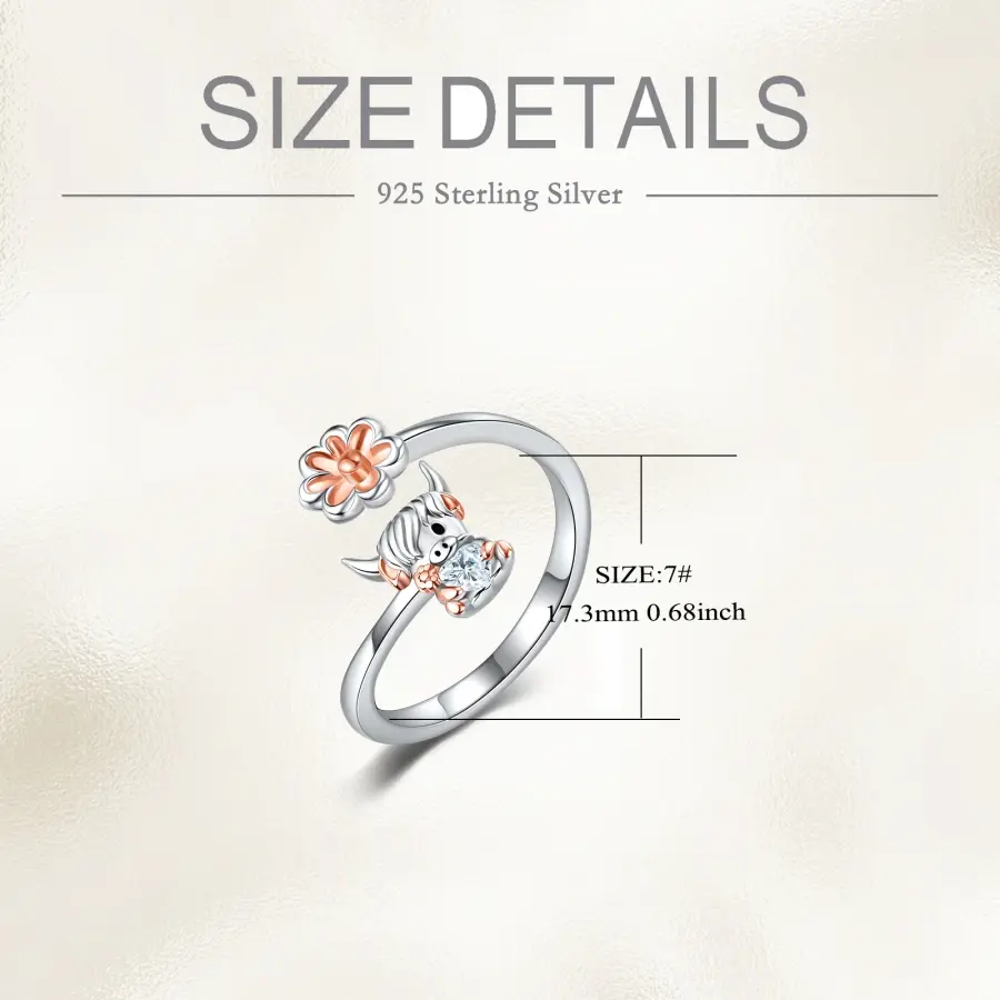 S925 sterling silver women's alpine cow open ring suitable for sizes 6-9, perfect for any holiday gift