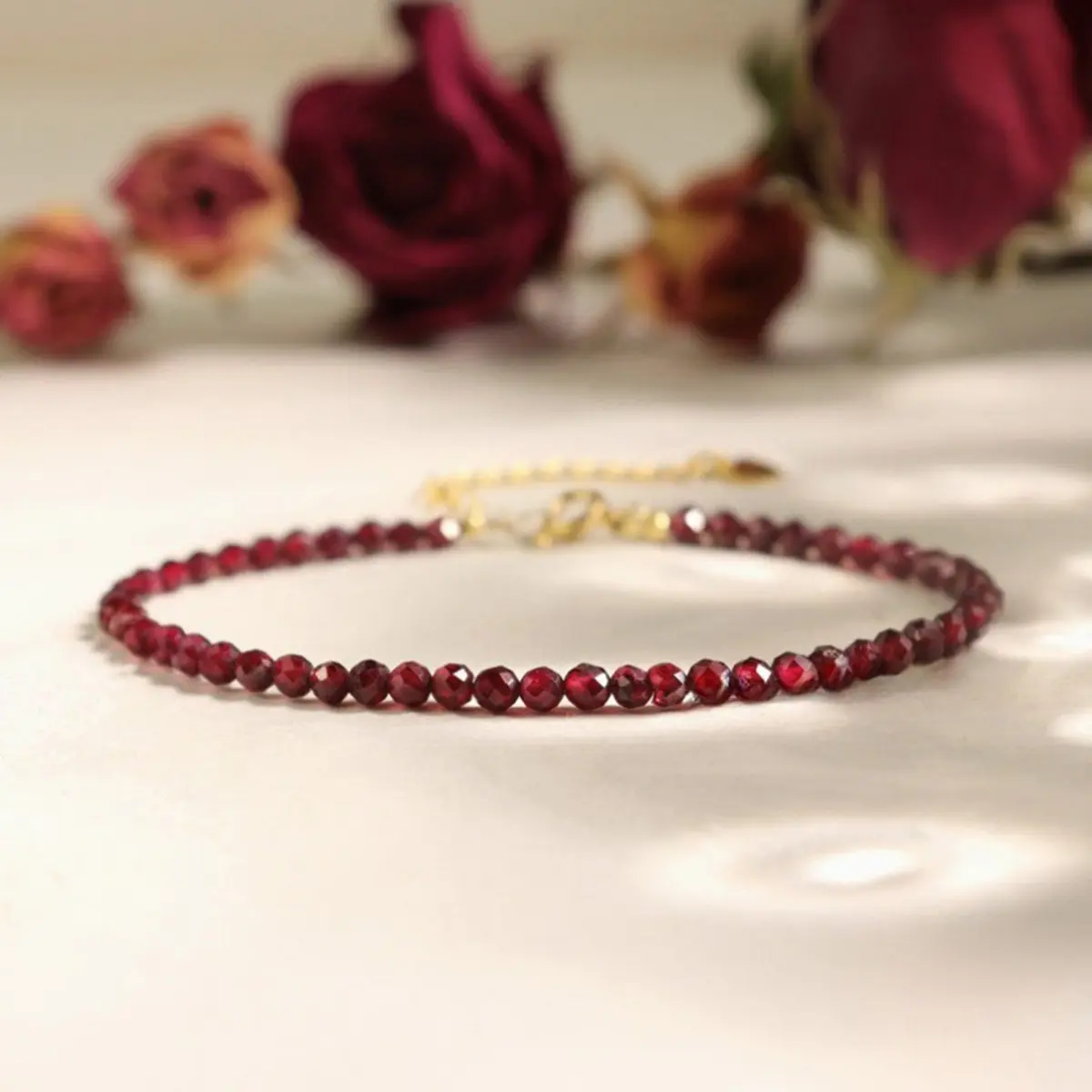 Handmade Excellence: Each bracelet is uniquely crafted, showcasing 3mm faceted garnet beads that shimmer beautifully.