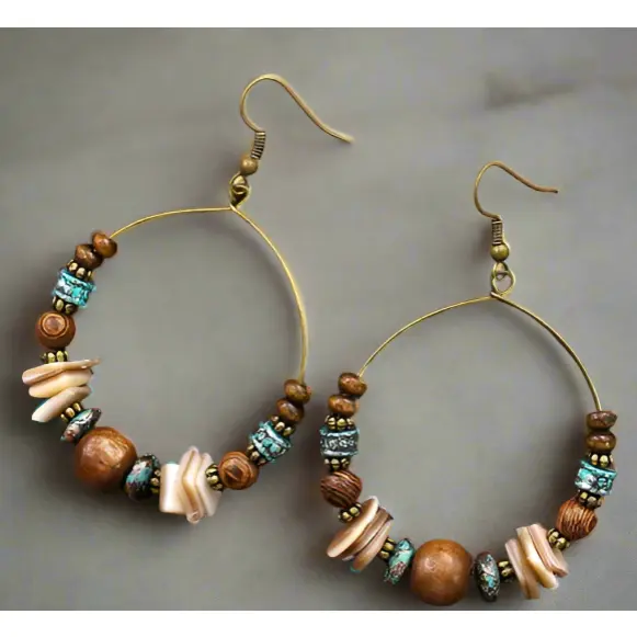 Natural bead earrings complement any top while also looking great with a cowboy hat. Created with high quality beads, they feature a design that will always be in style. Their light weight make them perfect for wearing all day.