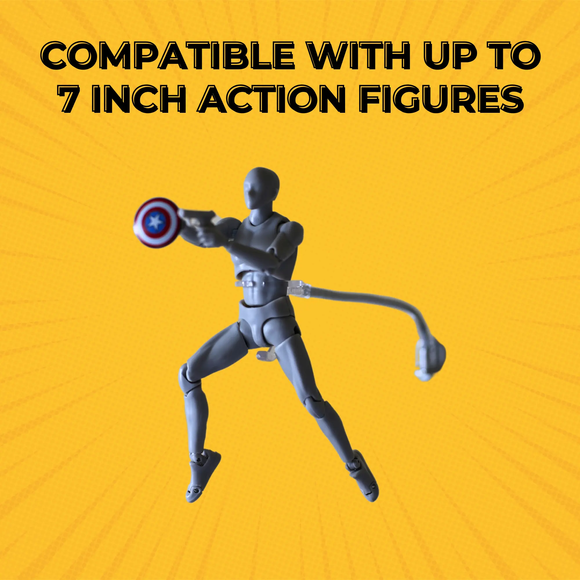 ยทAdjustable Metal Support Arm: Display your Action Figure in any way with the adjustable support arm you can have your figure seamlessly do any pose in the air