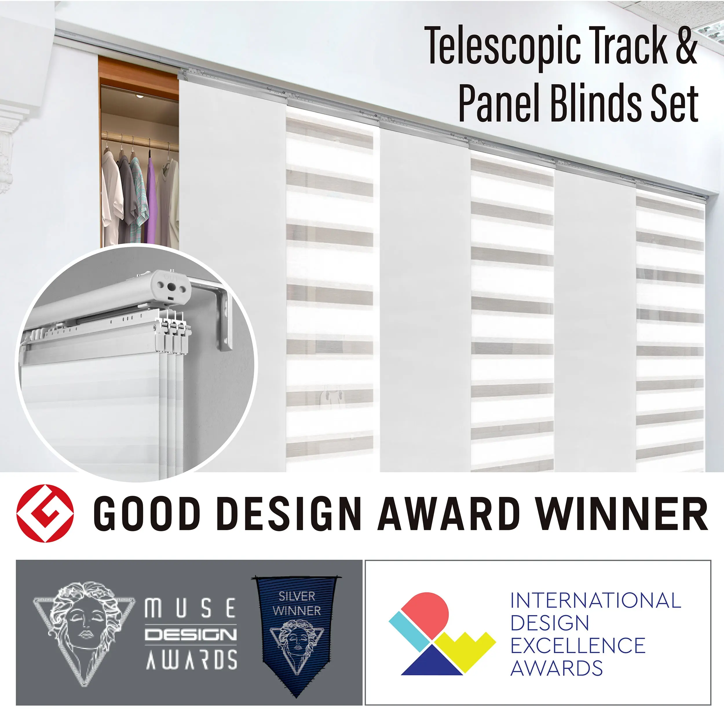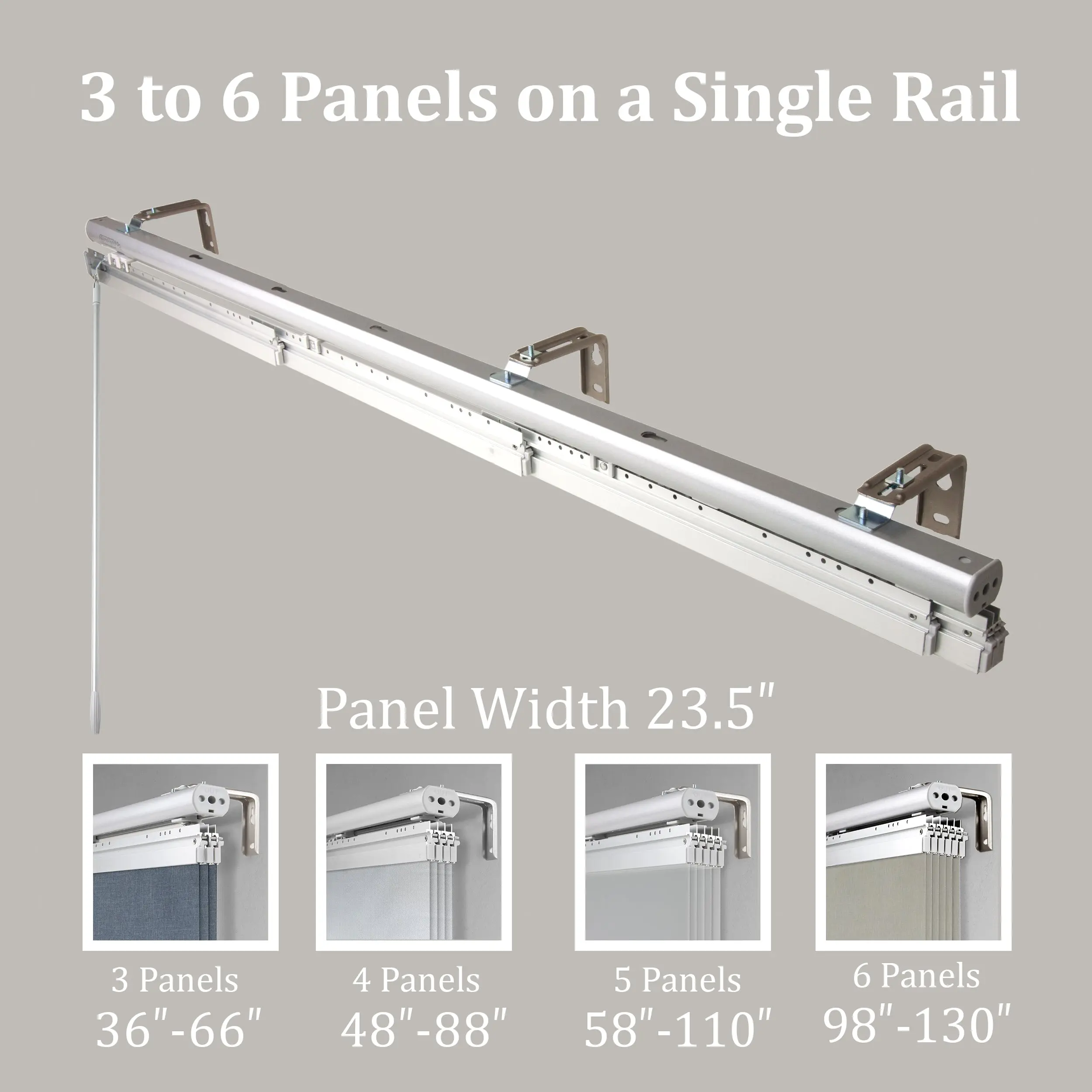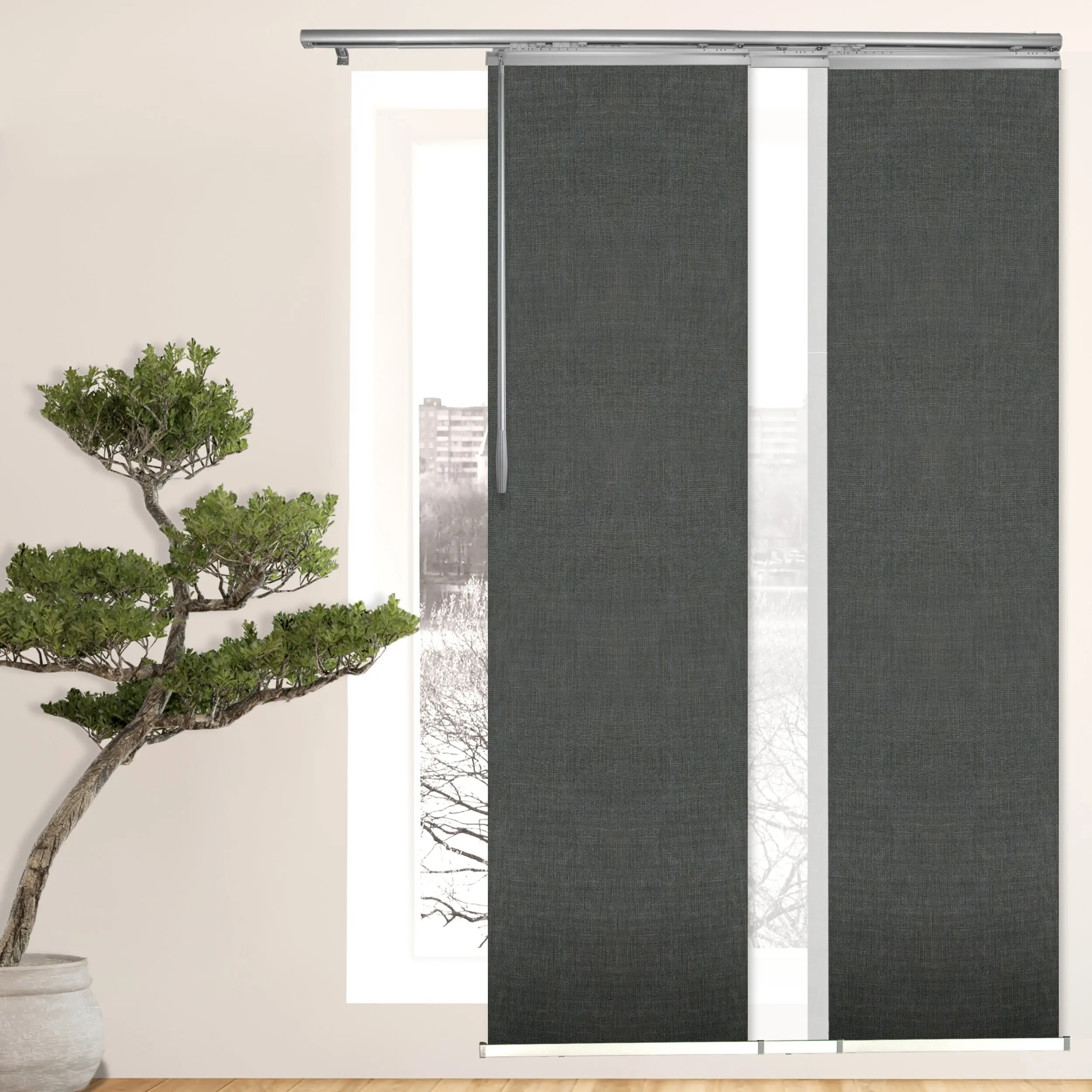 3-Panel Single Rail Panel Track Blind Extendable 36"-66"W x 91.4"H, Panel width 23.5", Winter, Smoke