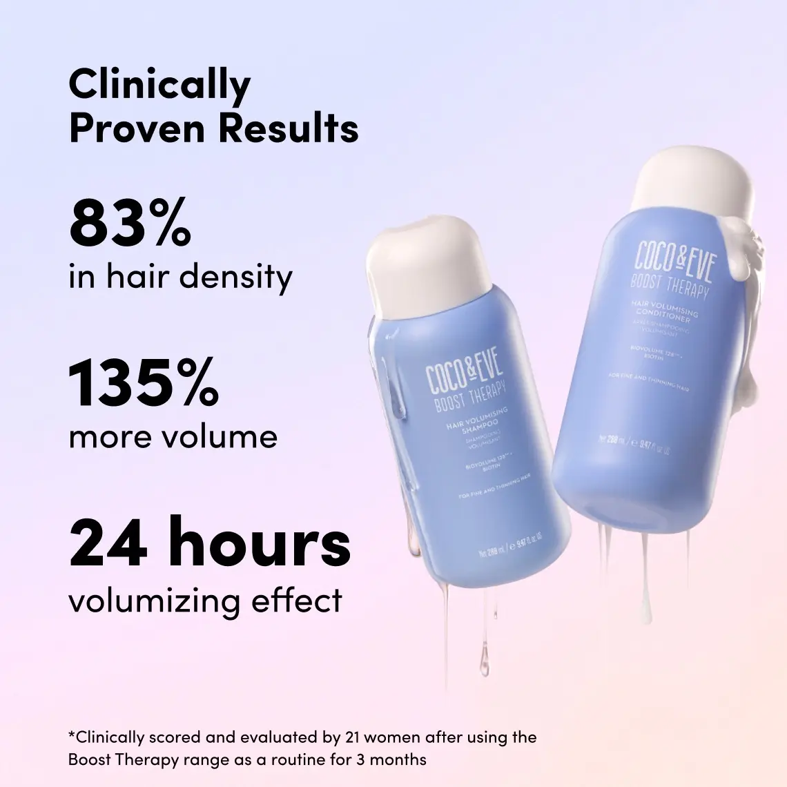 Transform fine, thinning hair with this set, with an instant 24-hour volumizing effect. Powered by Biovolume 128™ and Biotin, this set revitalizes, nourishes and adds volume and shine. Perfect for achieving maximum volume and manageability!