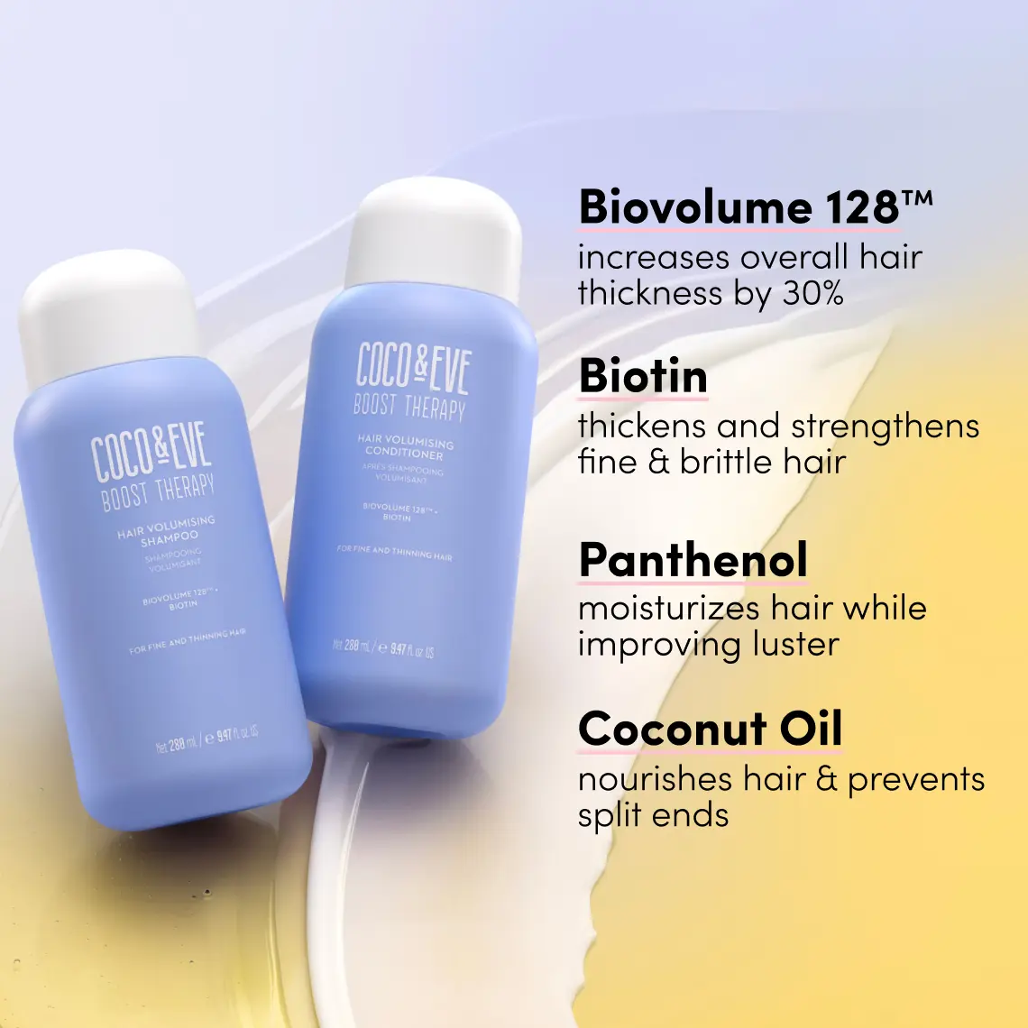 Gently cleanses and nourishes while boosting volume and reducing tangles