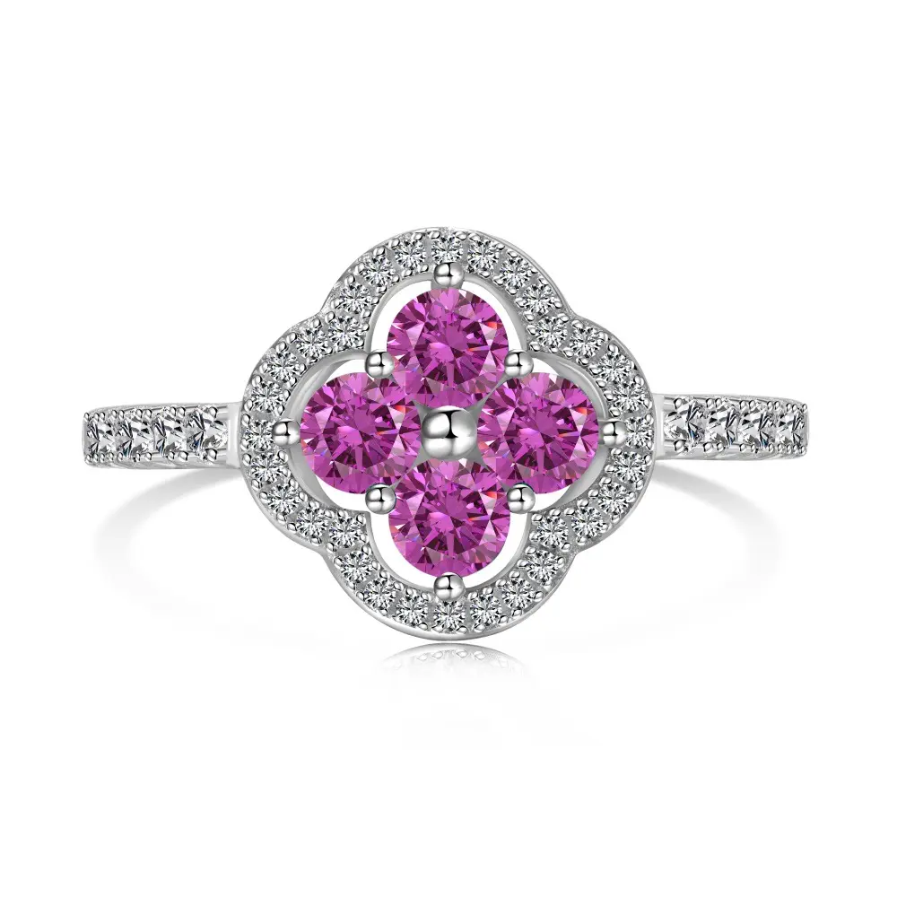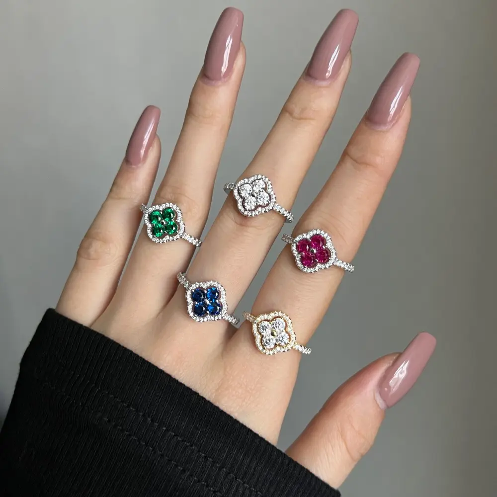 This exquisite ring is a perfect gift for your loved ones, especially on special occasions. It's ideal for engagements or as a heartfelt token of love and gratitude. Show your affection with this beautifully designed piece. The ring features a stunning four leaf clover design, adorned with multicolor 5A zirconia stones. It's a symbol of luck and charm, making it a cherished gift.