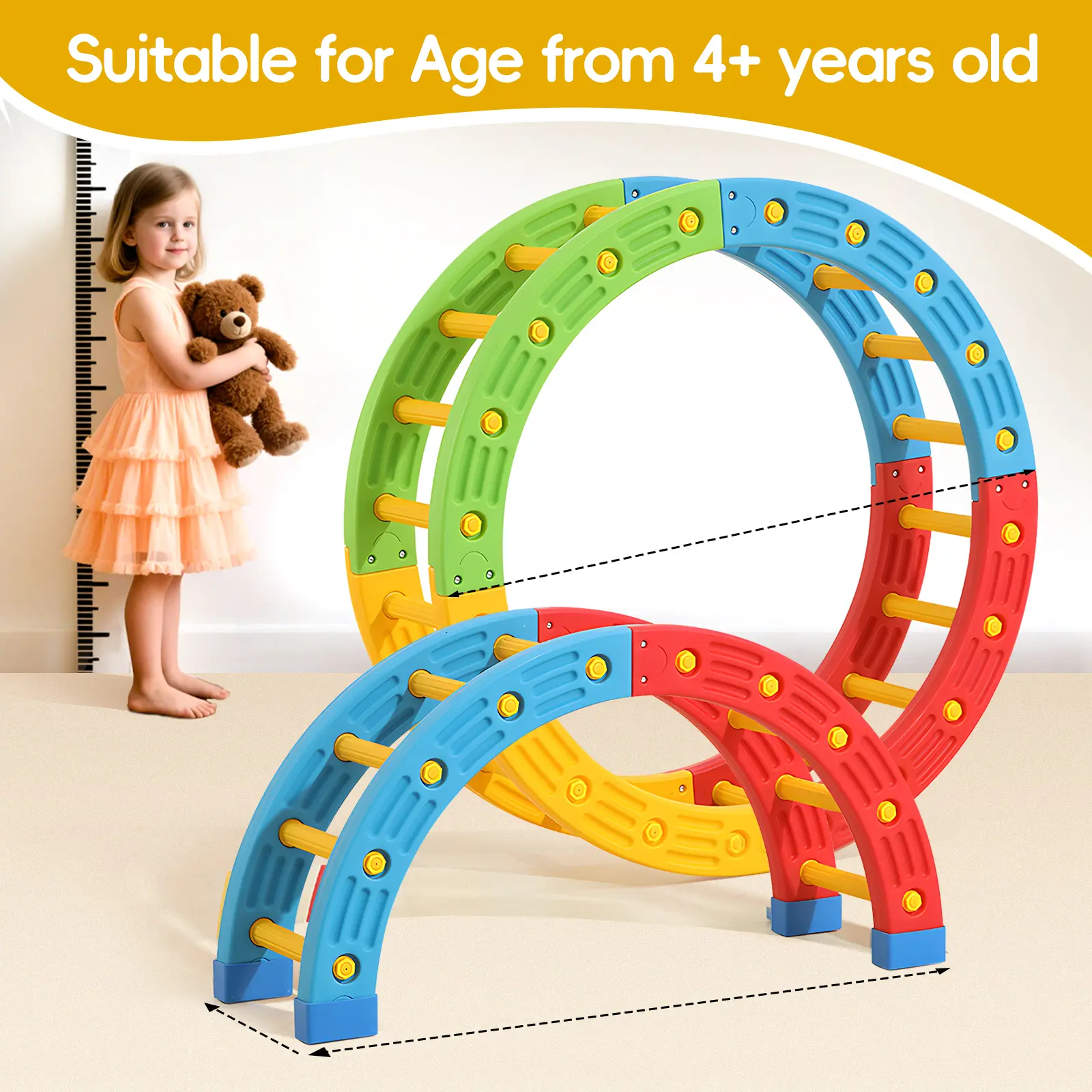 ·【4+ Combination】The children's sensory training equipment can create at least 4+ different modes in a whole circle, providing more possibilities for play. Your baby can climb arches, enjoy balance beams and swinging arches, climb through arches and race with toy cars.