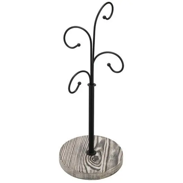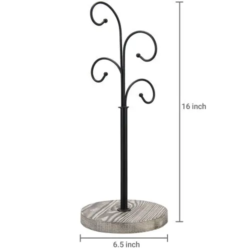 Save cabinet space with this coffee mug and cup storage tree! Featuring 4 metal arms and a rustic wood base, this mug rack is a decorative addition to any kitchen, office break room, coffee shop, beverage bar, or living space.