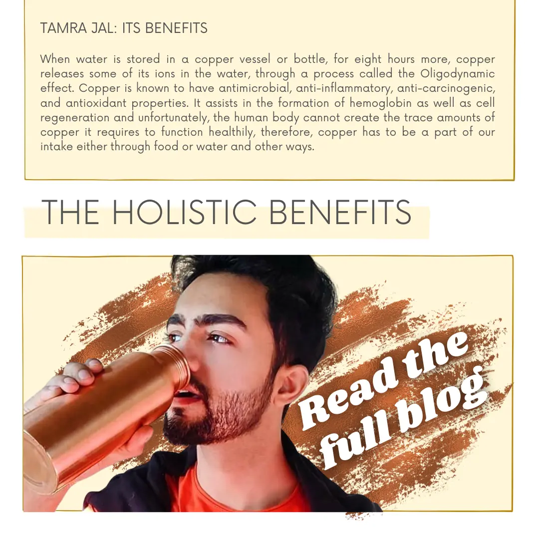 Sages since the ancient times of India traditionally drink from their pure Copper food utensils. In Ayurveda, storing water in a copper vessel is believed to potentially balance all the three doshas in our body, (Kapha, Vata and Pitta) by positively charging the water with its antimicrobial properties and healing benefits.