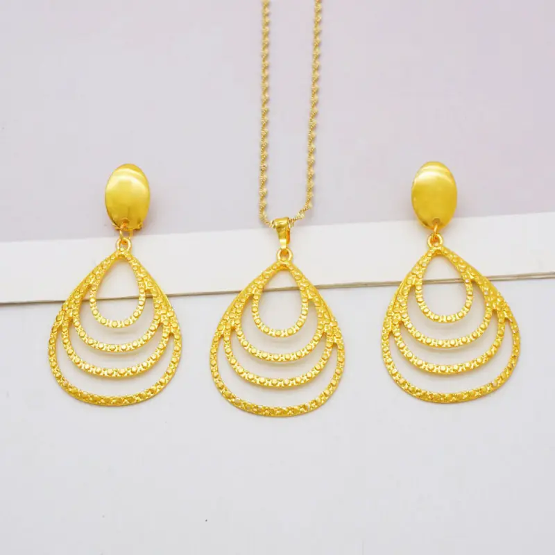Copper Plated 24K Gold Hollow Earrings Necklace Pendant Set Dubai Ladies Bridal Wedding Accessories Gifts For Your Mom