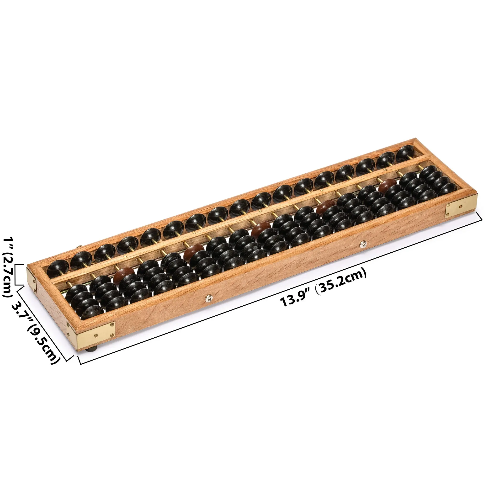 Vintage Style Wooden Abacus 13.9" - Professional 17 Column Soroban Calculator With Reset Button