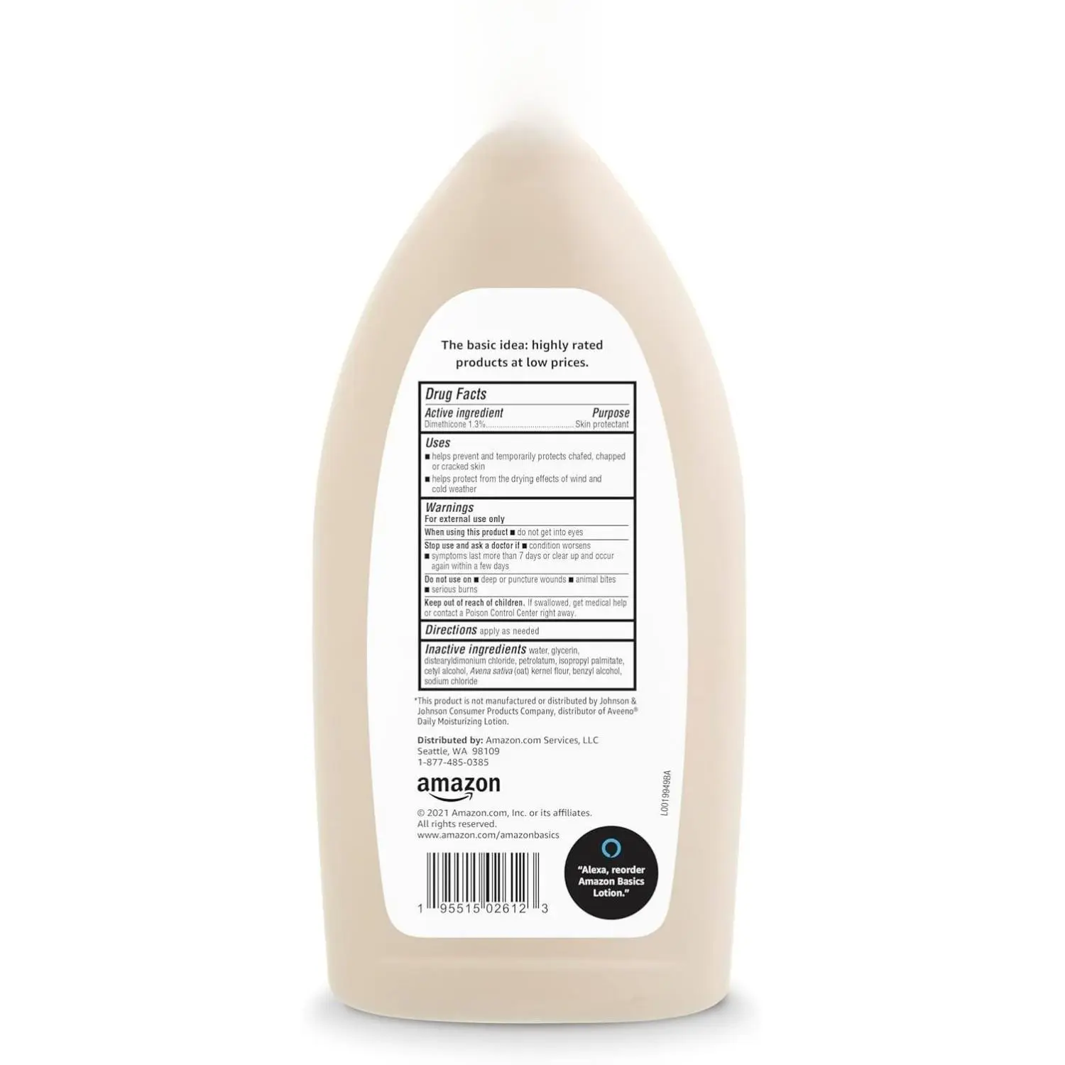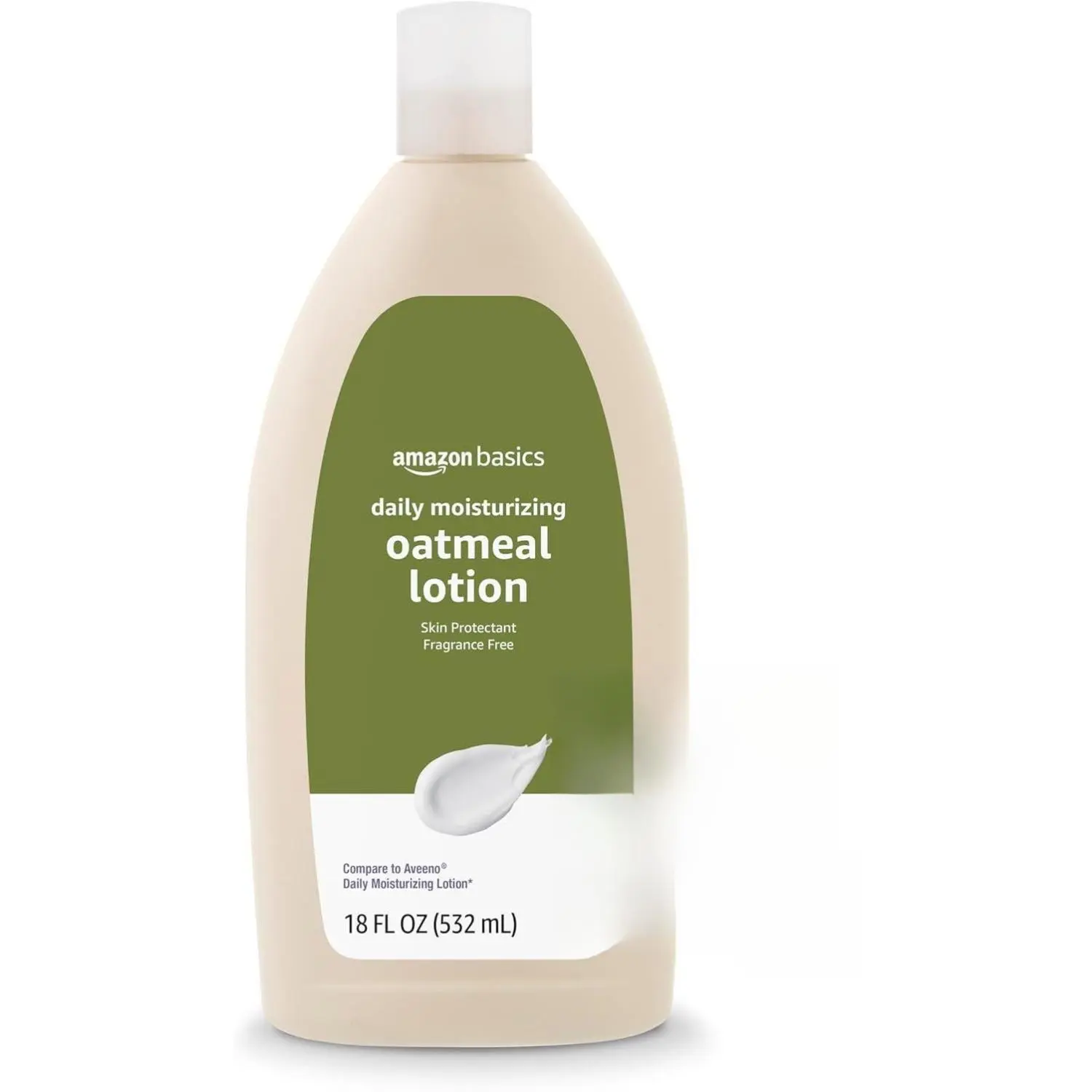 ·Amazon Basics Daily Moisturizing Oatmeal Body Lotion provides much-needed relief and protection. This dry skin lotion comes in an 18-fluid ounce bottle. Designed to penetrate deeply to rejuvenate and restore, the natural body lotion formula contains premium colloidal oatmeal, a known skin protectant that works against chapped, cracked skin. This fragrance-free lotion is dermatologist tested and non-comedogenic. Fast-absorbing and non-greasy, it is suitable for use as a lotion for dry skin.