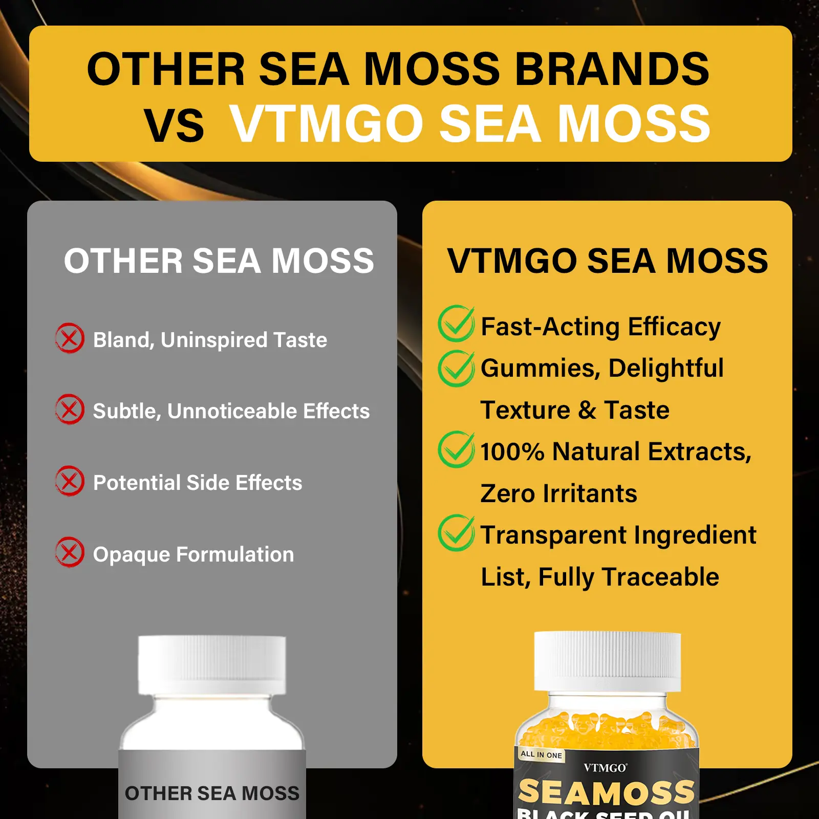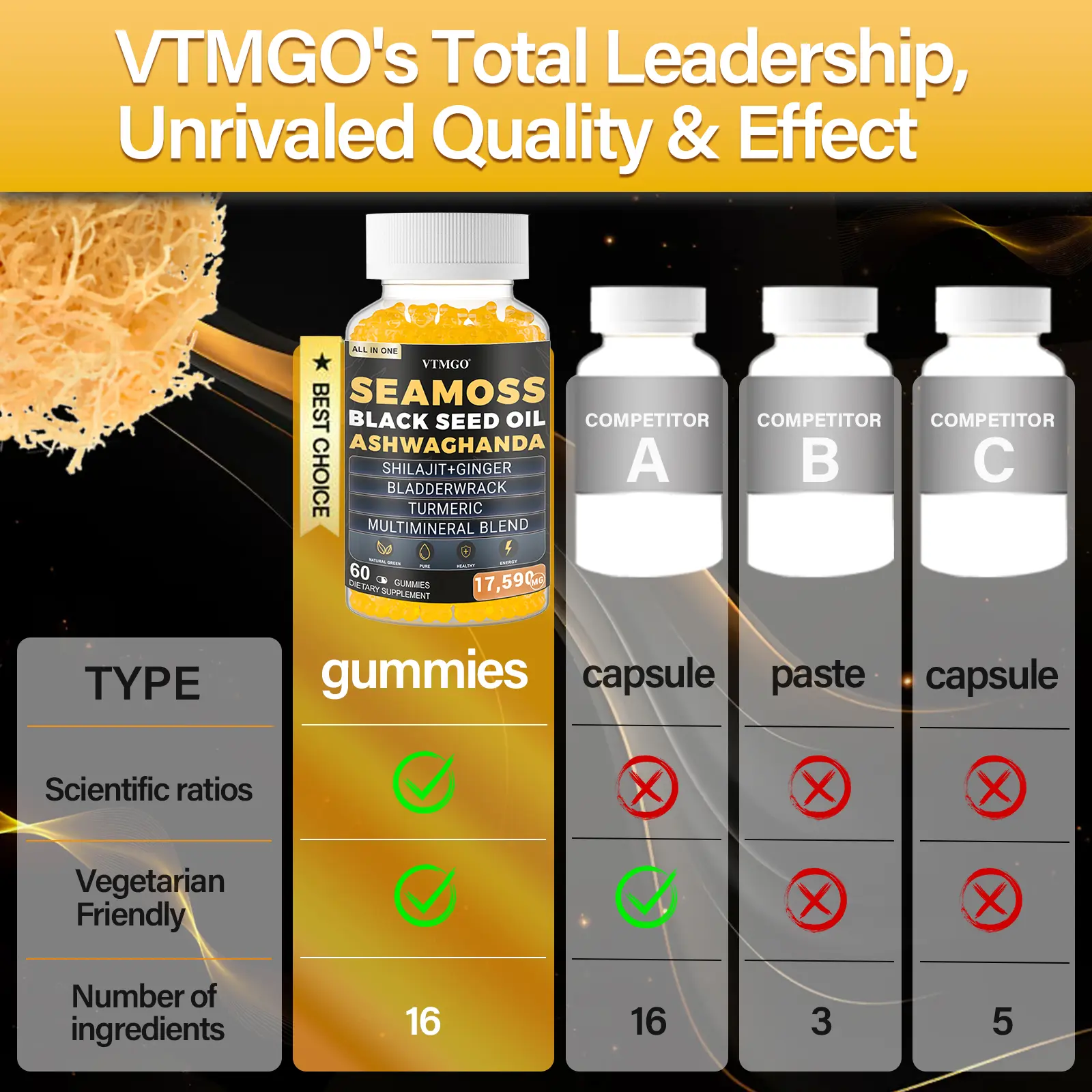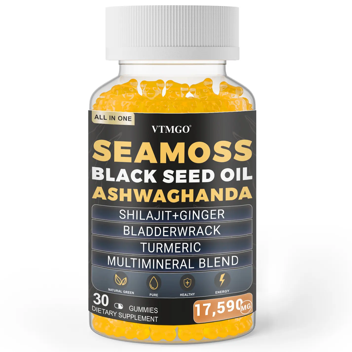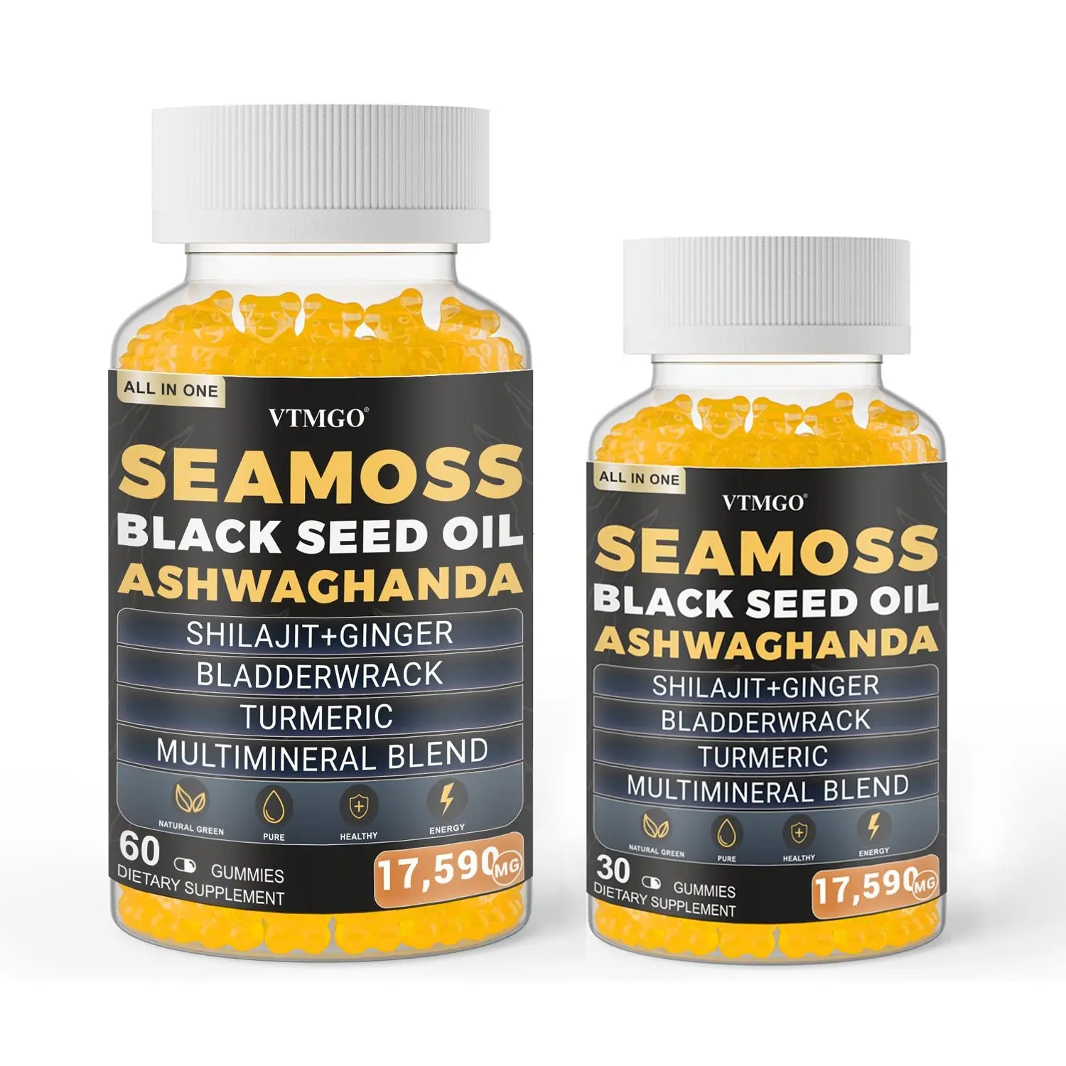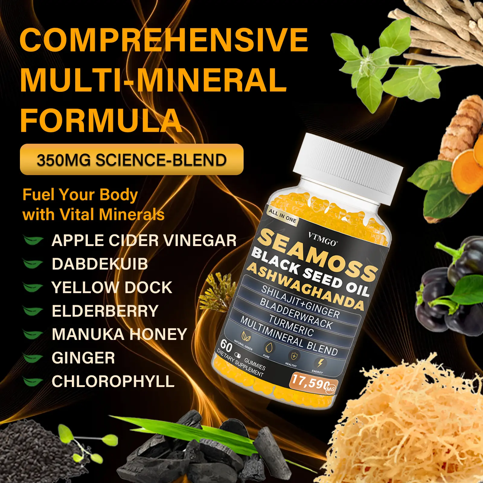 Organic Sea Moss Gummies with Black Seed Oil, Ashwagandha, Shilajit, Ginger, Bladderwrack, Turmeric & Multimineral Blend