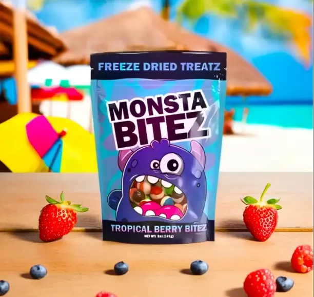 Elevate your snack game with this pack of tropical berries, rainbow bitez, and rainbow chili!