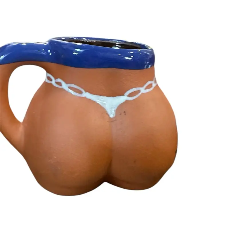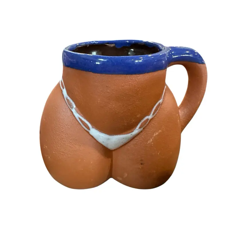 🔥Add some spice to your drinkware with this handmade Mexican ceramic mug shaped like a booty in a bikini! This eye-catching mug holds 16 oz and stands approximately 5.5 inches tall, making it perfect for your favorite ☕️cafecito, chocolate caliente, or even a cold chela.🍺