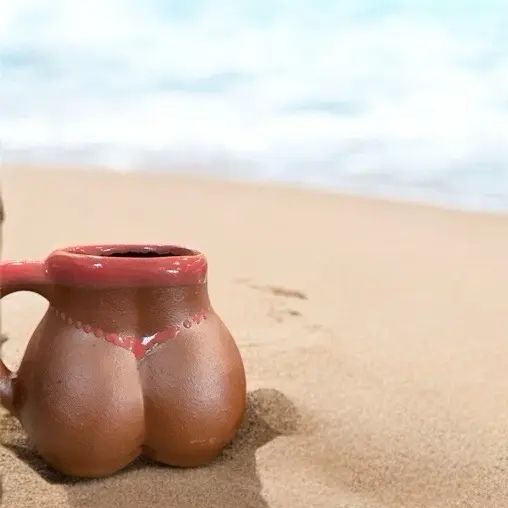 🔥Add some spice to your drinkware with this handmade Mexican ceramic mug shaped like a booty in a bikini! This eye-catching mug holds 16 oz and stands approximately 5.5 inches tall, making it perfect for your favorite ☕️cafecito, chocolate caliente, or even a cold chela.🍺